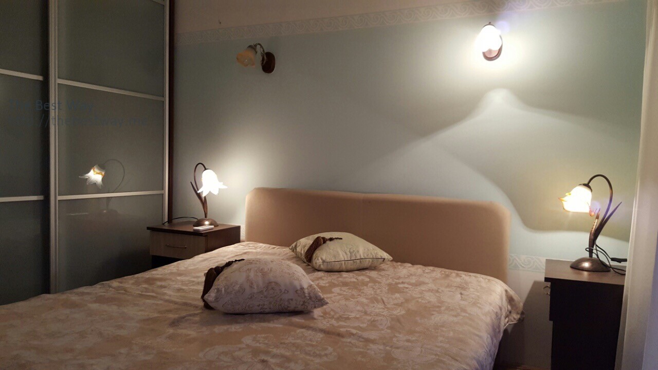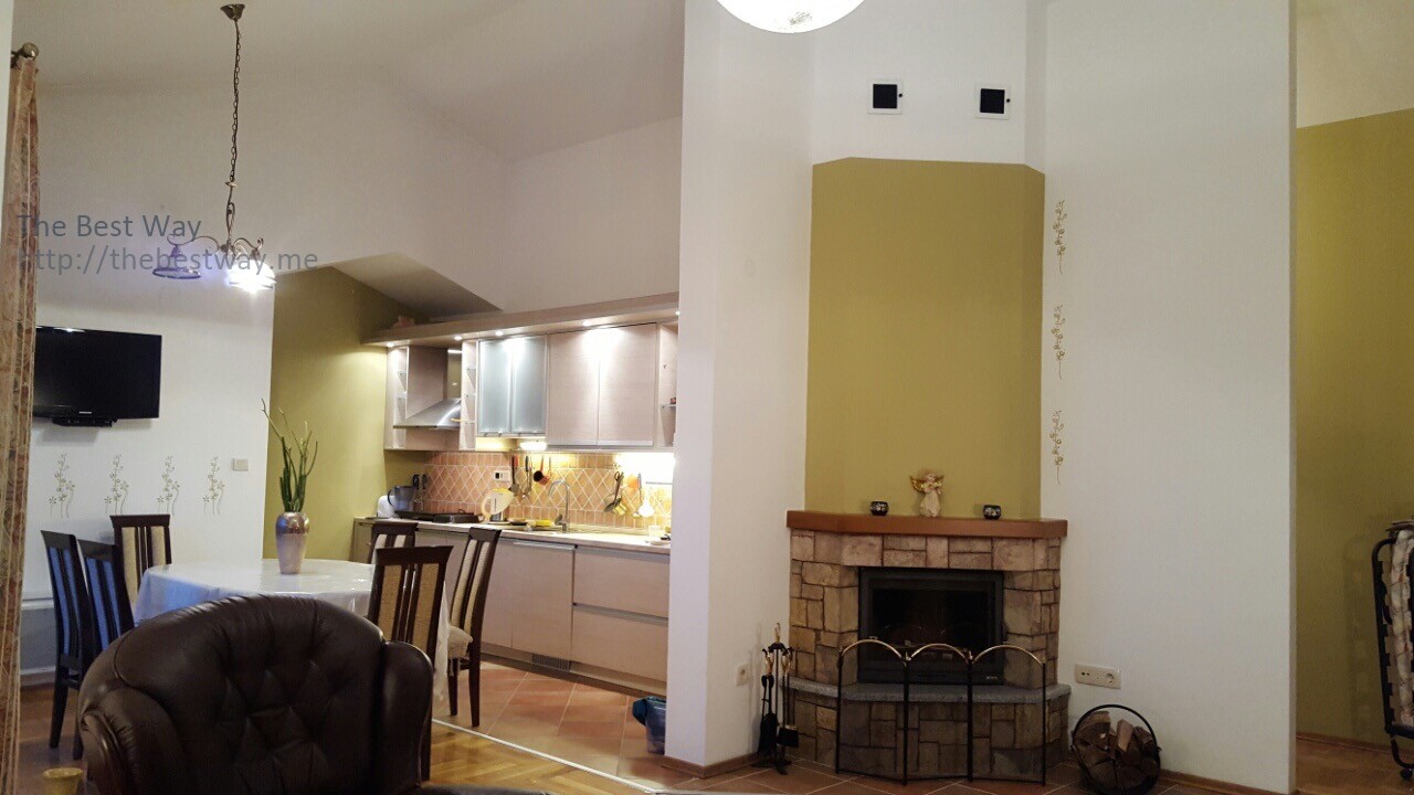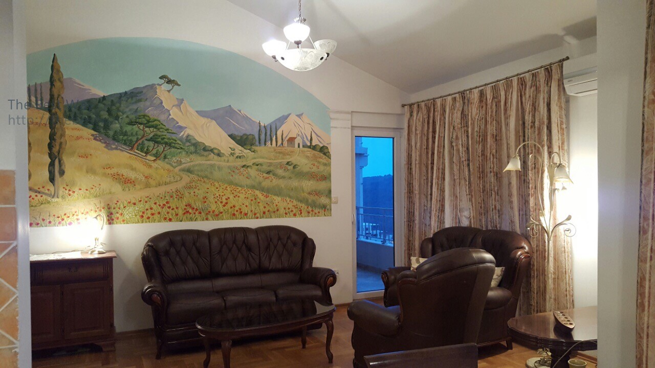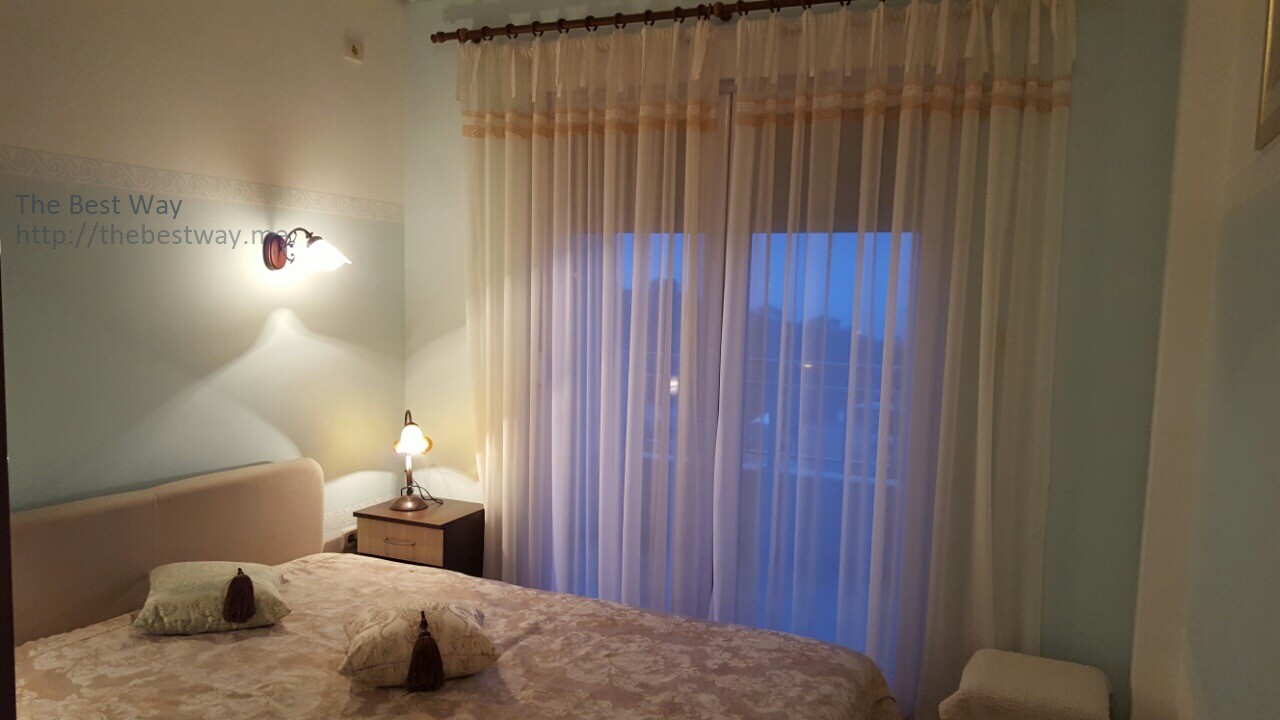 Вокруг дома оливковая роща вперемешку с лавровыми и гранатовыми деревьями. В квартире большая гостиная с настоящим камином, кожаными раскладным диваном и креслами, журнальным столиком и телевизором с кабельным телевидением и wi-fi, которая совмещена с удобной кухней с большим обеденным столом и стульями, со всей необходимой техникой и даже больше (электрический чайник, электрическая плита, духовая печь, вытяжка, холодильник, посудомоечная машинка, тостер, вся кухонная утварь), действительно огромной террасой по периметру квартиры со столом и стульями. В 1 спальне французская кровать, большой платяной шкаф и прикроватные тумбочки со светильником. Свой санузел с ванной. Выход на отдельную террасу. В 2 спальне раскладной кожаный диван и большой платяной шкаф и тумбочка. Есть раскладное спальное место дополнительно (при необходимости) Санузел 2 оборудован душевой кабинкой и стиральной машинкой. В квартире имеется 3 кондиционера( в каждой комнате), пылесос, утюг, гладильная доска, сушилка для белья, фен.