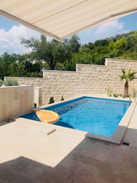 Стильный, комфортный и просторный дом построен в 2018 году. На участке выполнен ландшафтный дизайн и установлена система капельного полива. Также расположен бассейн с системой очистки воды без использования хлора. Вилла состоит из 2-х этажей, с тремя спальнями, каждая из которых имеет свой гардероб, кухня- столовая, гостиная. Полная внутренняя отделка, кухня с техникой Bosch,камин, эксклюзивная мебель,подогрев полов во всем доме, кондиционеры Mitsubishi, городские коммуникации. Дом продается с мебелью.