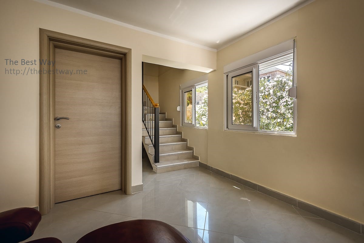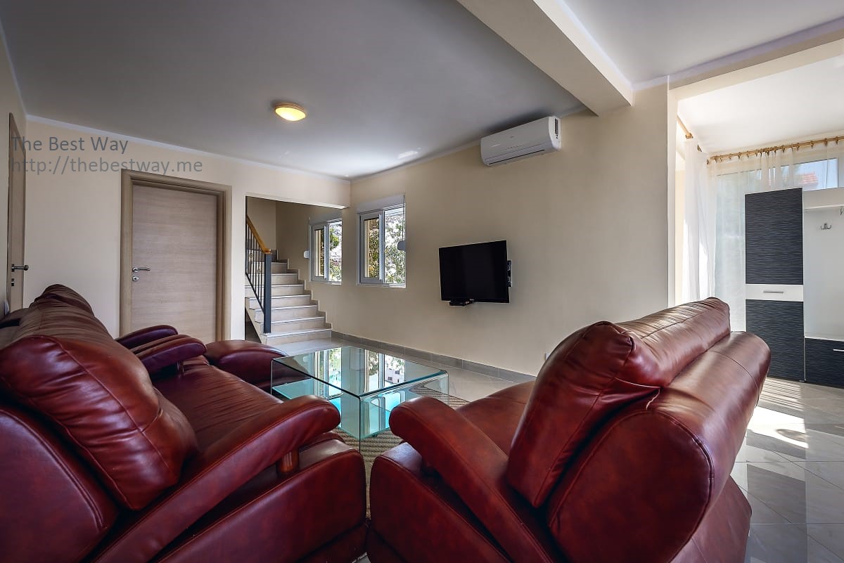 Година израде 2010 Плац 5 ари, гаража, базен. Површина куће 260 м2. 1. кат - мала кухиња, дневни боравак, сауна, вц, директан излаз на базен. 2. кат - велика кухиња - дневни боравак, тоалет за госте, велика спаваћа соба с тушем, 3. спрат - 2 спаваће собе с тушевима у свакој. На парцели, воћним агрумима, врт је уредан и уредан.