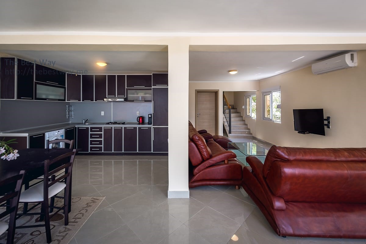 Year Built 2010. Plot 5 acres, garage, pool. House area 260 sq m. 1st floor - a small kitchen, living room, sauna, toilet, direct access to the pool. 2nd floor - large kitchen - living room, guest toilet, large bedroom with shower, 3rd floor - 2 bedrooms with showers in each. On the plot, fruiting citrus fruits, the garden is neat and tidy.