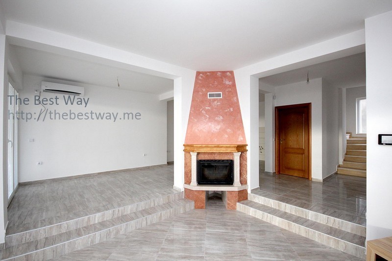 Внутренняя планировка включает в себя огромную гостиную с панорамным остеклением, который открывает нашему взору невероятный вид на море, город и лесной массив, также в гостиной находится камин, гостиная плавно перетекает в трапезную и кухонную зону, таким образом заключая в себе всю гармонию этого пространства. Второй и третий этажи составляют спальни и подсобные помещения.