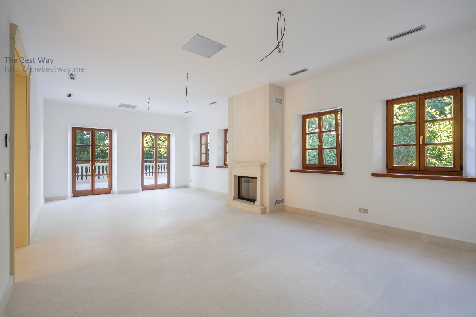 Второй этаж: - Большой вестибюль - большая гостиная (с камином) - кухня, столовая - гостевой туалет