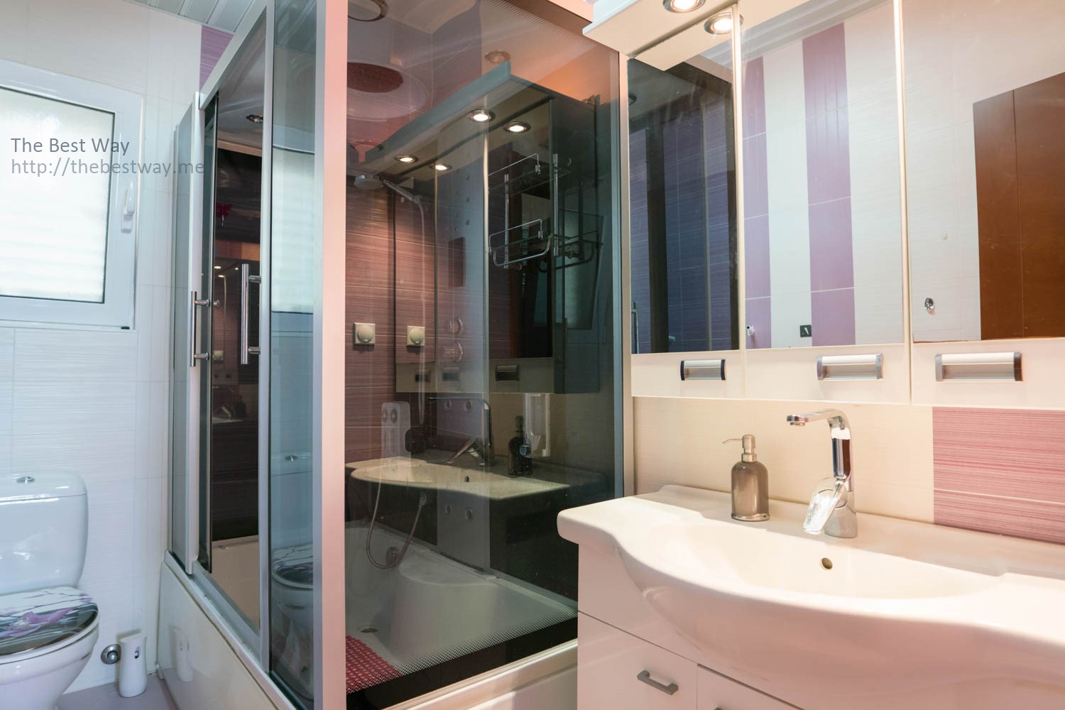 В каждой комнате установлены кондиционеры и конвекторы. Дом продается полностью меблированный, с полностью укомплектованной кухней и со всей бытовой техникой. На заднем дворе есть каменный роштиль. Также на участке есть парковка, рассчитанная на 2 парковочных места с воротами с электро мотором. Есть городская канализация.