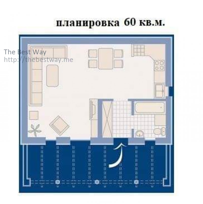 - Квартира с большой террасой 60 м2 (студия) = 80 000 у.е.