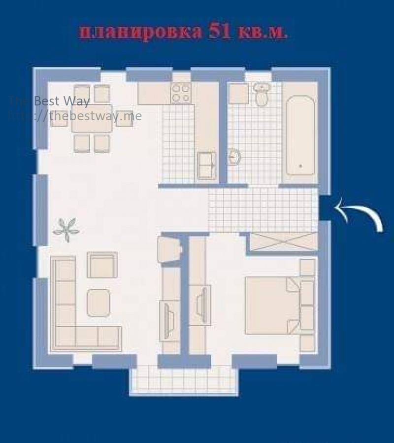 - Квартира со спальней 51 м2 - 120 000 евро.