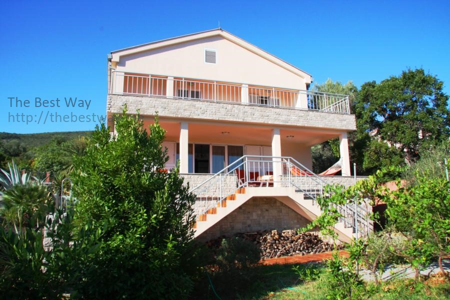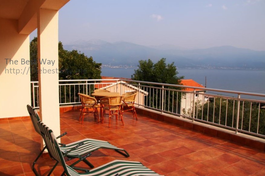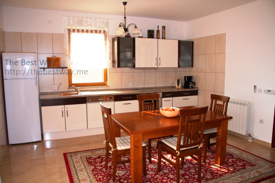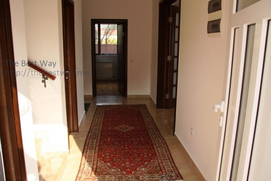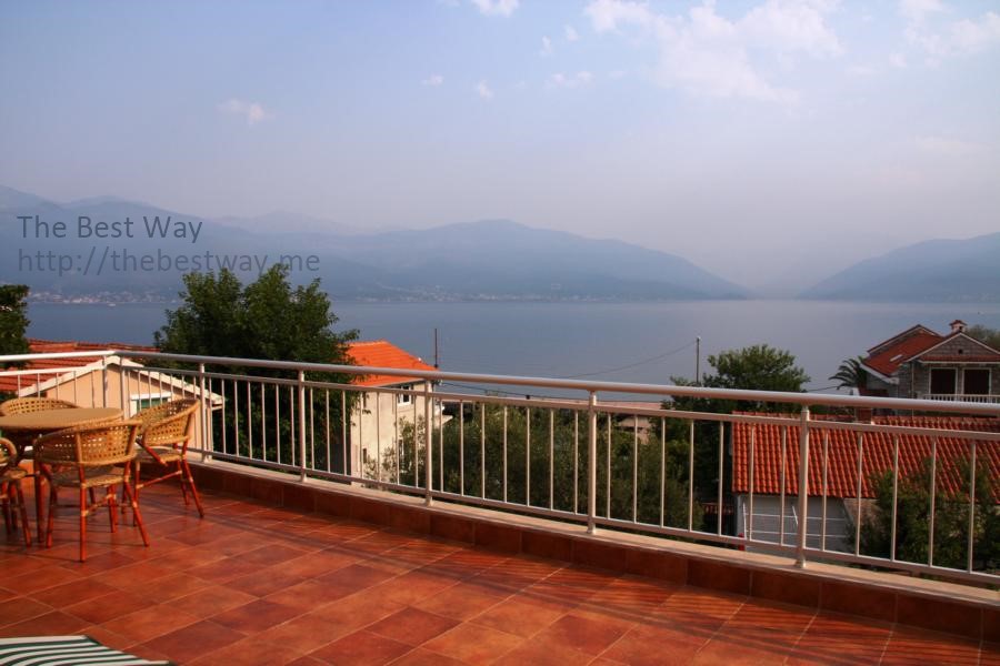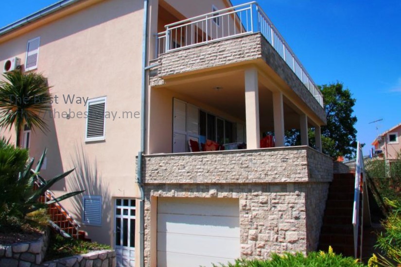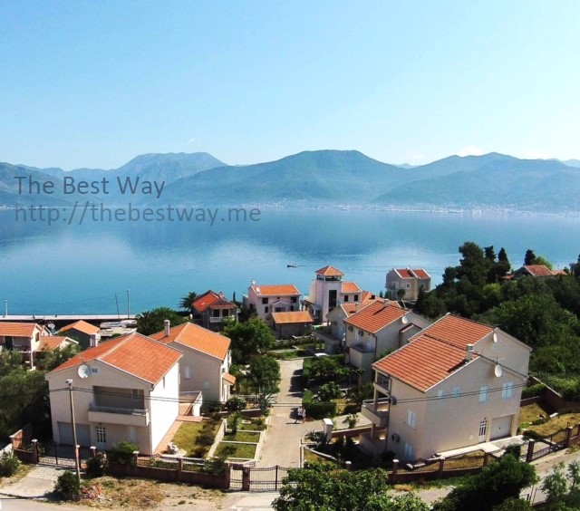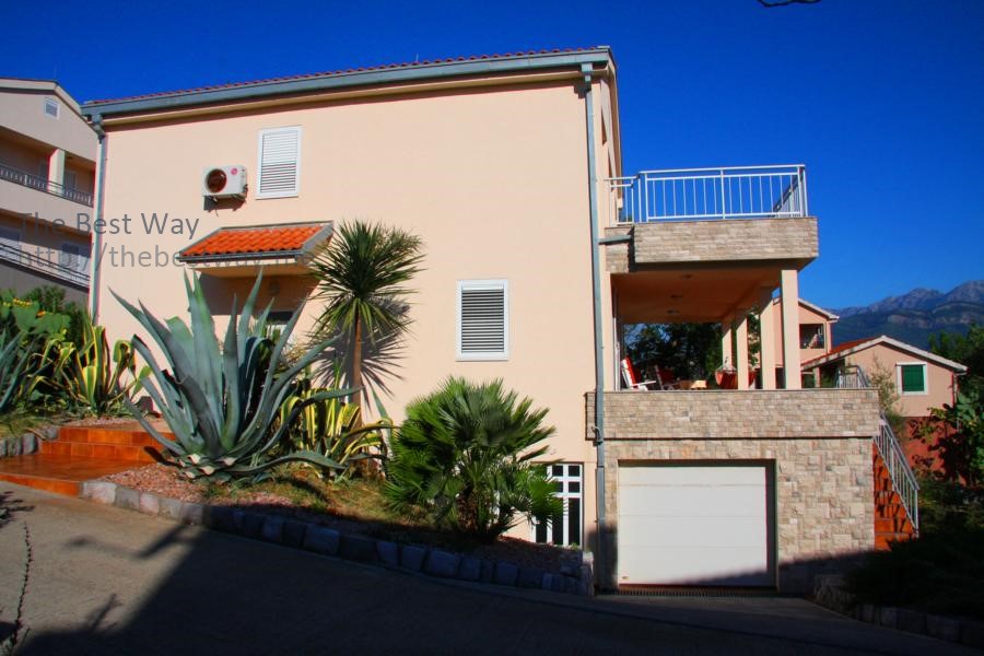Двухэтажный дом в коттеджном поселке с видом на Которский залив. В доме 2 террасы, лоджия, балкон, гостиная, кухня, столовая, 3 спальни, 2 санузла. Дом 2-х этажный с повалом, в котором находится гараж и хоз.помещение. Дом обставлен мебелью. Территория благоустроена, имеются зелённые насождения и фруктовые деревья. Общая площадь дома 275,25 м кв. Стены: полый кирпич 30 см + теплоизоляция 6 см СТЕРОДУР + штукатурка. Земельный участок - 6,5 соток. Огороженная территория и интегрирована в один общий коттеджный посёлок из 6-и домов. Охрана с видеонаблюдением. Гараж на одну машину и парковка на 2 машины. Автоматические кованные ворота. Телефон + интернет. Домофон. Спутниковая антенна. Электро котельная (водяное отопление в холодное время года) Кондиционеры 3 шт. Снабжение водой двойного типа: дом подключён к городской трассе водоснабжения и имеется резервуар для сбора дождевой воды на 30 м.куб. с гидрофором. Холодная и горячая вода. Канализация. Окна – стеклопакет (дерево/алюминий) Жалюзи – алюминий. Лестница между этажами – мрамор Гараж с автоматическими воротами 2 большие террасы Кухня встроенная произ. Германия Камин мраморный (производство Италия) Спальни 4 шт. Ванные комнаты с совмещёнными санузлами 3 шт. Гостевой туалет 1 шт. Гараж с автоматическими воротами, огороженная территория. Телефон, спутниковая антенна, электрокотельная (отопление зимой), кондиционер, холодная и горячая вода, канализация (септик).