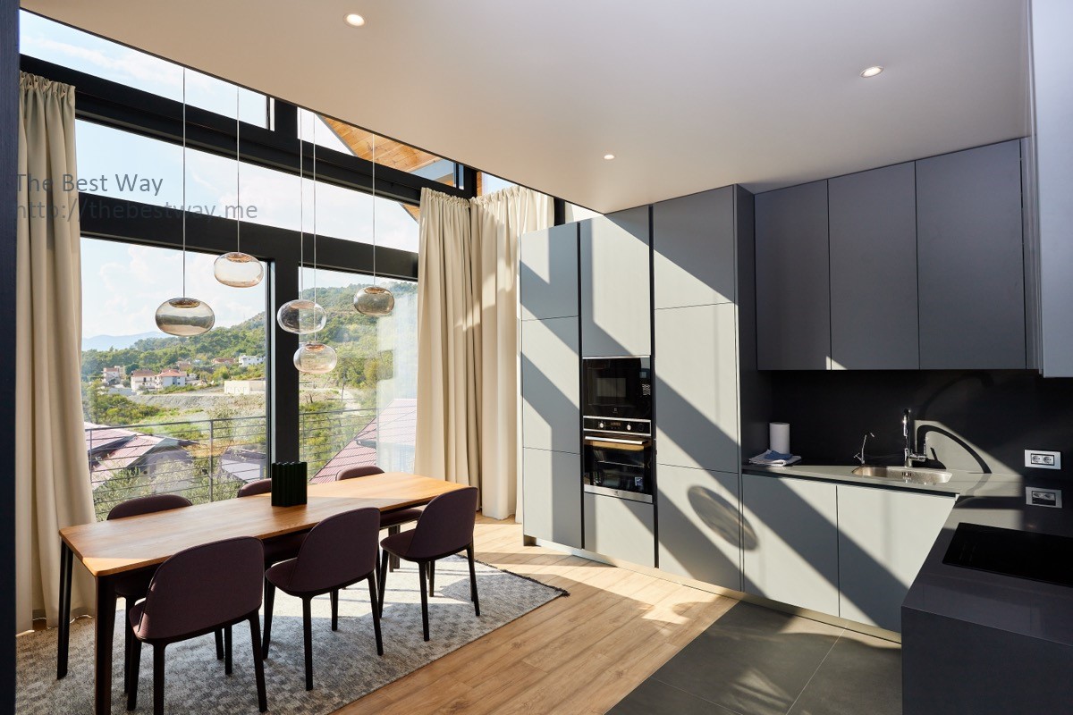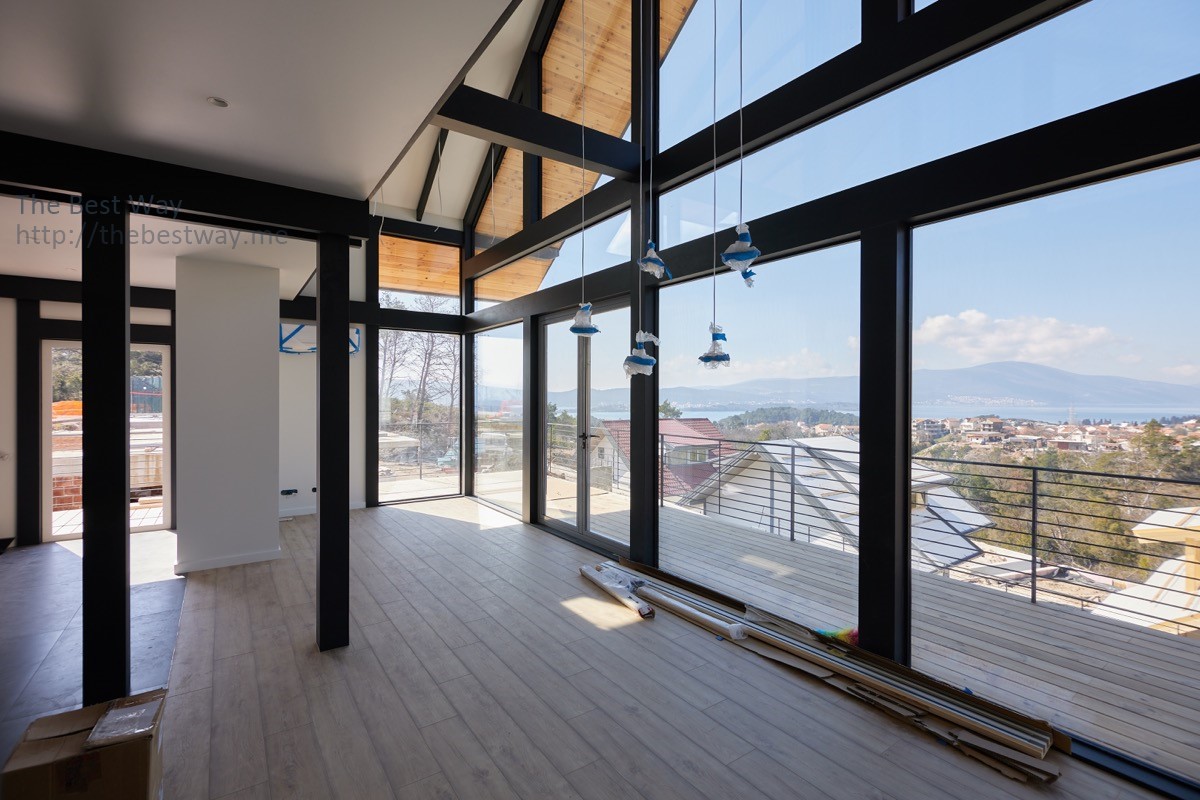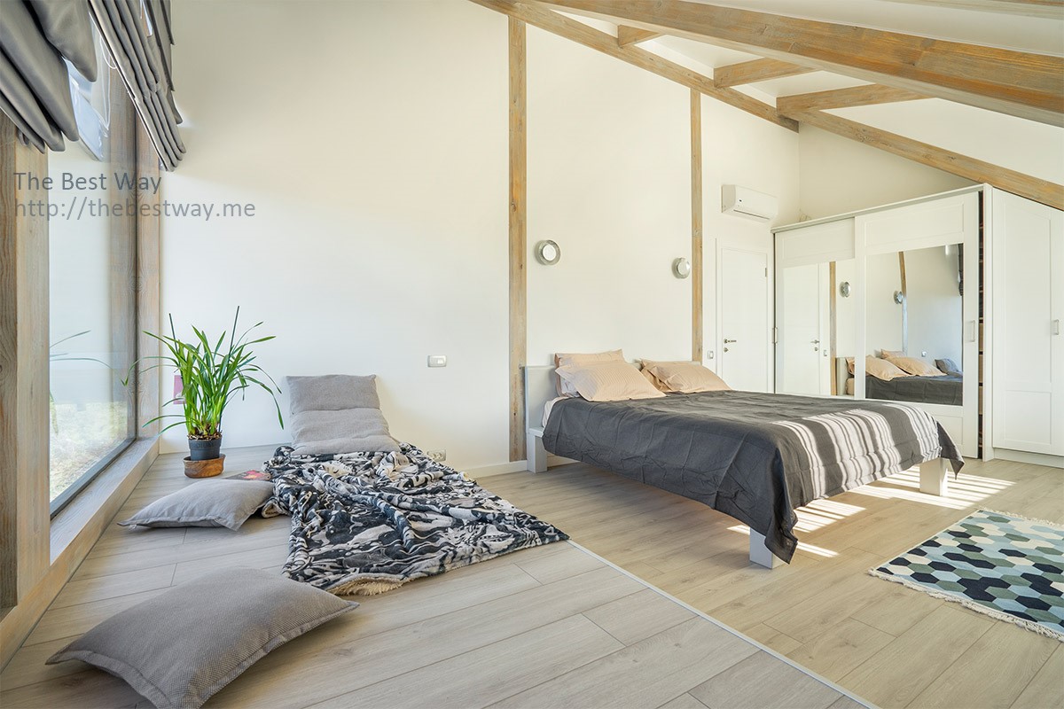 3 этажа, 230 кв.м 1 большая спальня на третьем этаже, но по проекту в доме может разместиться до трех спален 3 ванные комнаты с теплыми водяными полами на всех этажах дома. Цена: 430 000 €