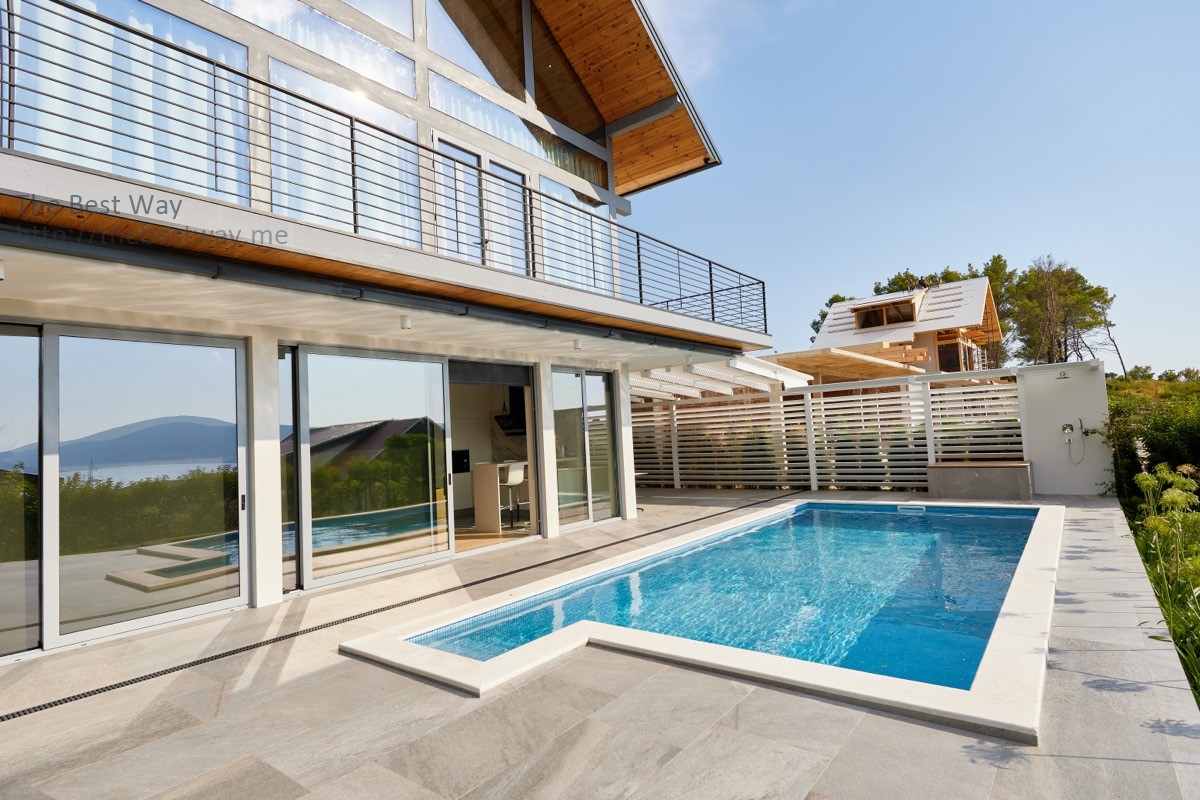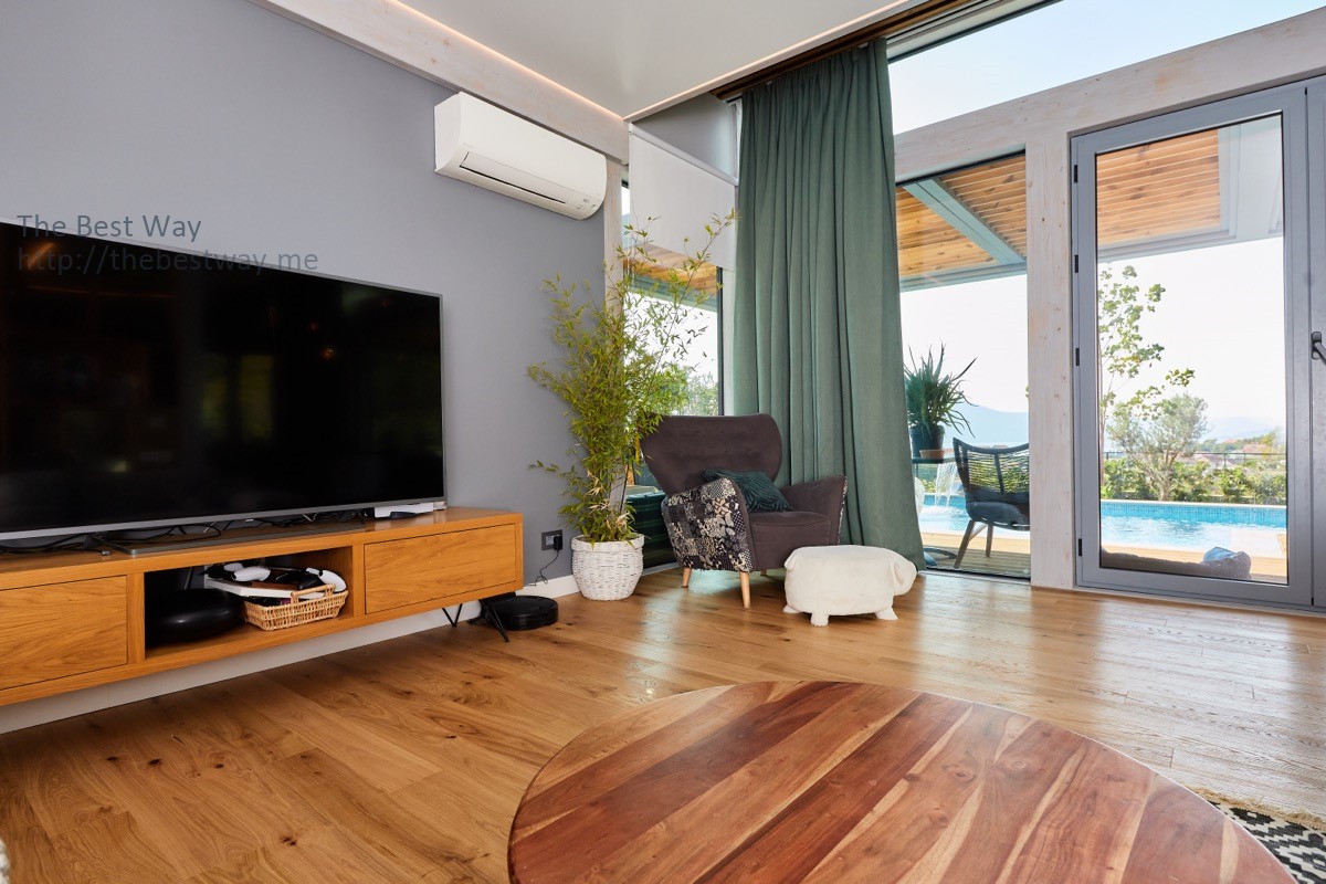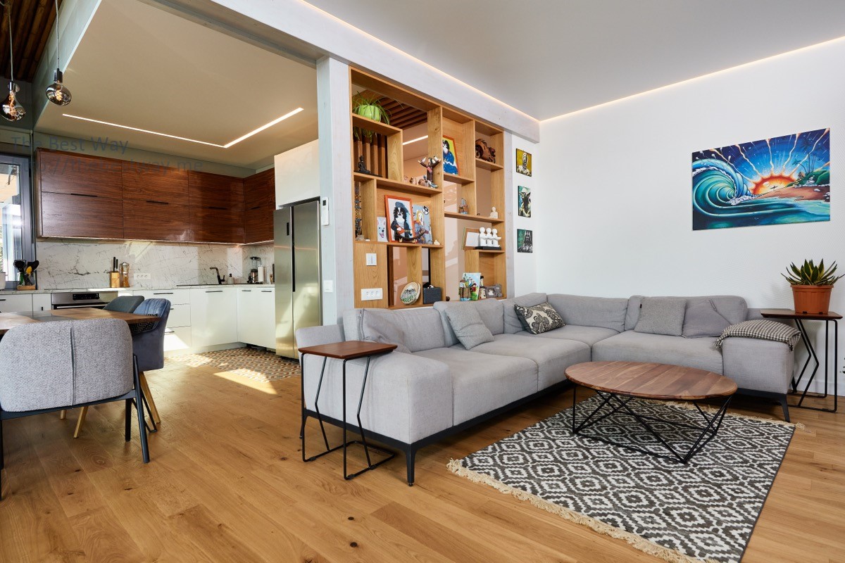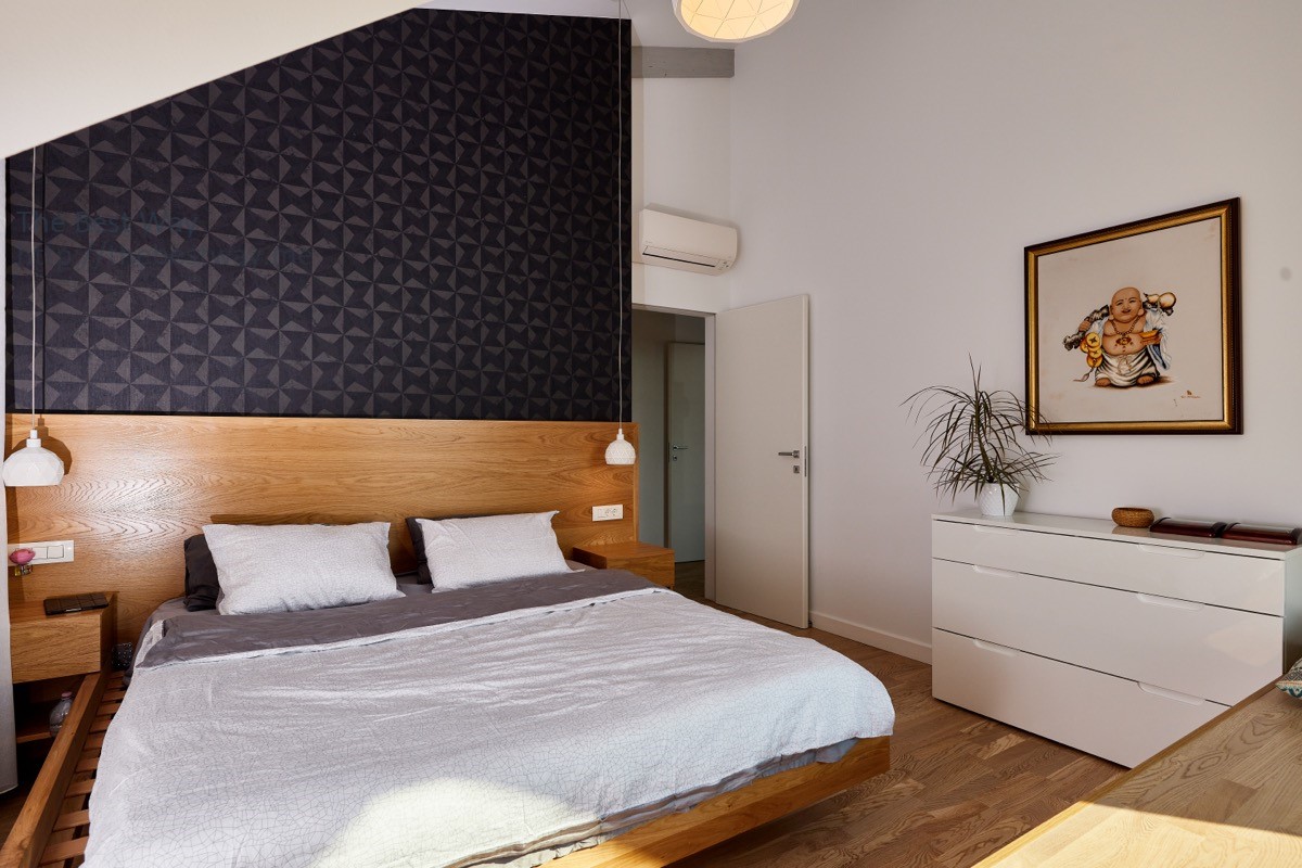 3 этажа, 230 кв.м 1 большая спальня на третьем этаже, но по проекту в доме может разместиться до трех спален 3 ванные комнаты с теплыми водяными полами на всех этажах дома. Цена: 430 000 €