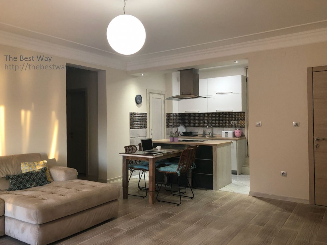 Description of the object: The apartment is located below the main road, just 160 m from the sea/ beach, and has a beautiful view of the sea and sunset. Two-storey apartment: 1st floor: large living room, two bedrooms, bathroom, kitchen (76 m2); 2nd floor (attic): two bedrooms, bathroom (36 m2). High-quality construction: natural granite in bathrooms, parquet floors based on natural oils. There is a possibility of buying a garage.