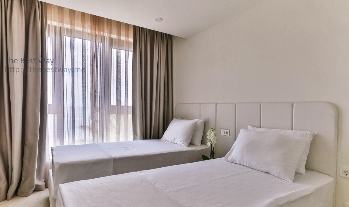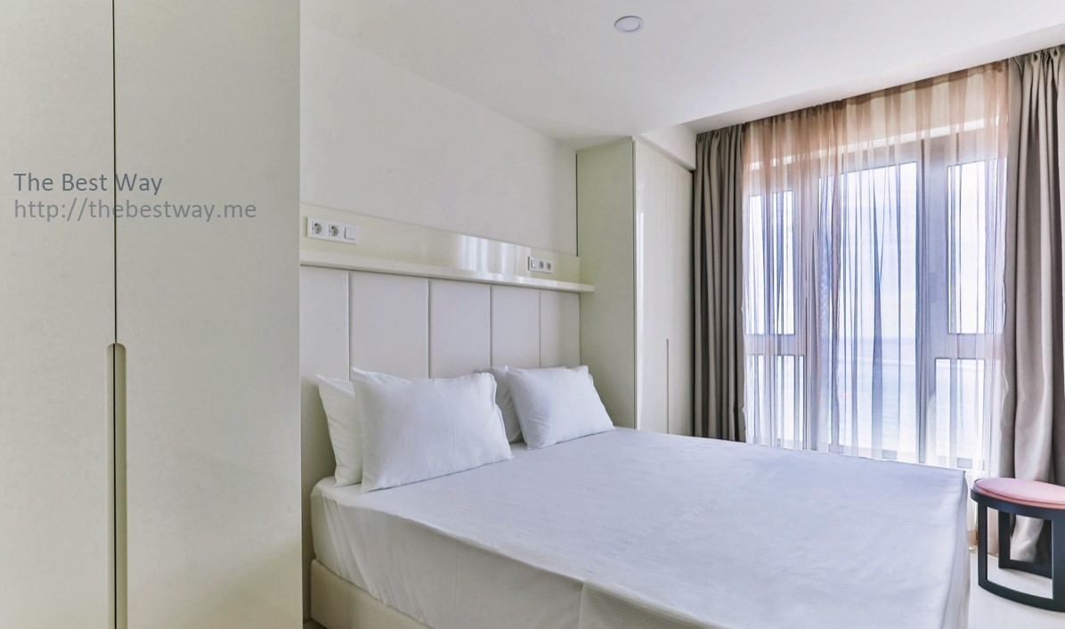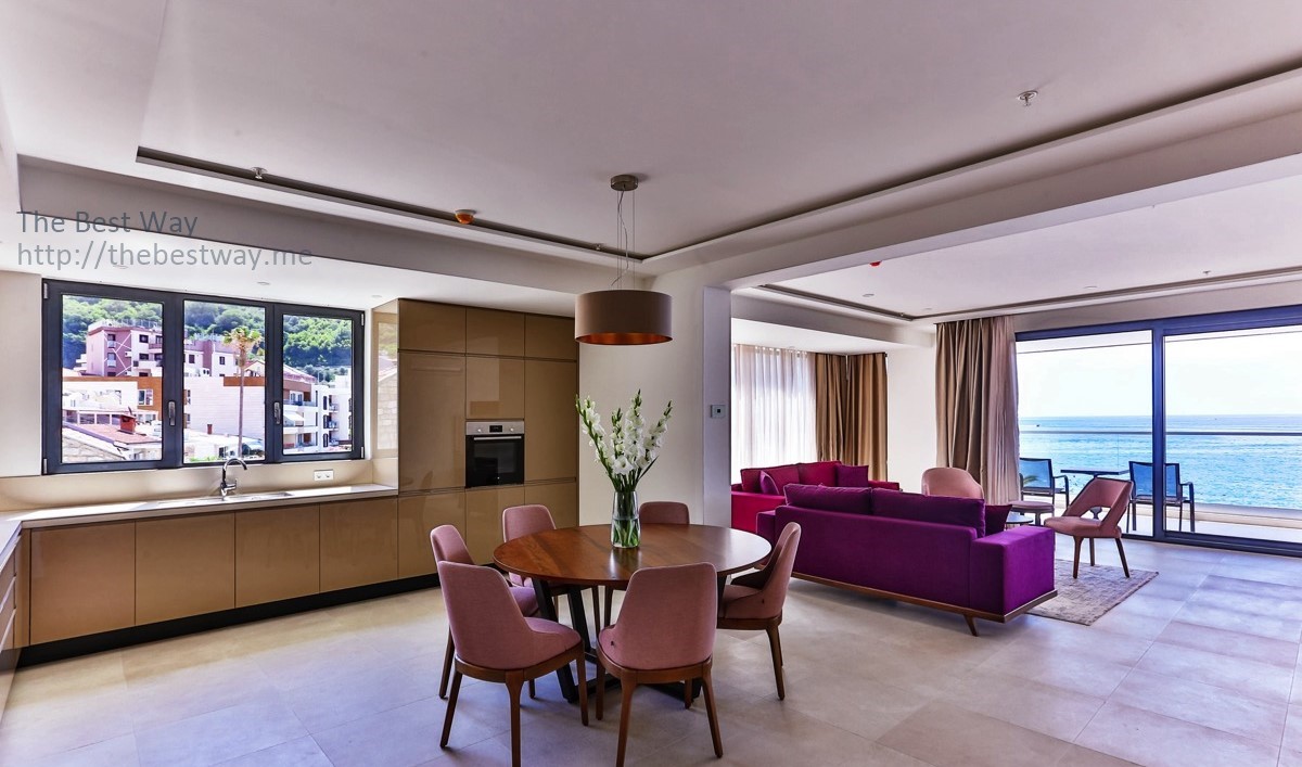 Object description: A new premium residential complex is located on the first line of the sea in the village of Rafailovichi on the Budva Riviera. They are equipped with furniture and household appliances in accordance with the standards of the hotel business for 5-star hotels. The apartments have spacious living rooms, luxurious kitchens, comfortable and quiet bedrooms, modern bathrooms and spacious terraces. The two- and three-bedroom apartments have two bathrooms with a combined shower and bathtub. Two-bedroom apartment 78 m2 Apartment with 3 bedrooms 138 m2 Apartments by the sea - price 374'400 - 662'400 euros