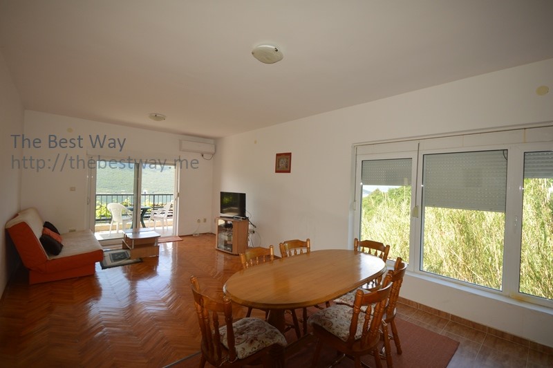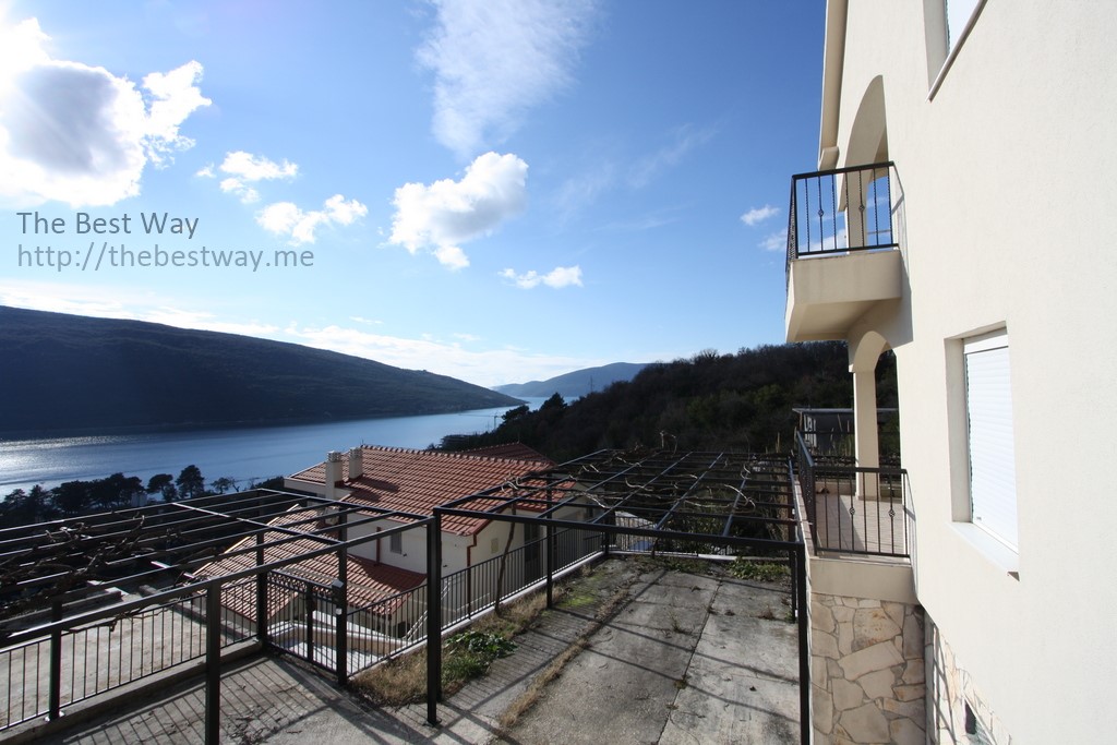 Great house with a view of the bay in Kumbor For sale a spacious, bright house in the resort village of Kumbor. The house area is 169 m2, The plot area is 349 m2. Layout: Ground floor - garage; Second floor - corridor, living room with kitchen area and terrace, two separate bedrooms, bathroom with toilet; Third floor - corridor, living room with kitchen area and terrace, two separate bedrooms, bathroom with toilet; To "Portonovi" ten minutes on foot, all infrastructure and communications are urban. An excellent offer, both for living and recreation, and for renting.