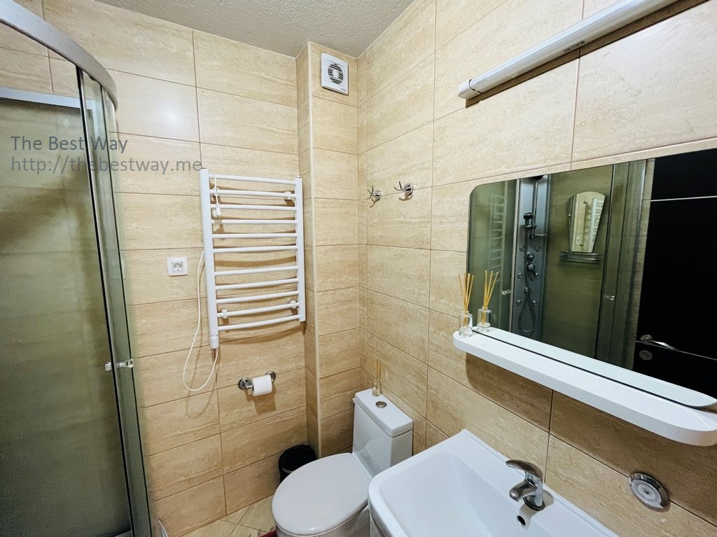 The apartment is for sale fully furnished (kitchen, sofa bed in the living room, TV stand, coffee table, dining table, double bed in the bedroom, wardrobe, closet in the hallway) The apartment is equipped with all necessary appliances: washing machine, dishwasher, refrigerator, stove, TV, iron, ironing board, vacuum cleaner. The apartment is fully ready to move in or rent out. The house is located in the very center of Budva near the main infrastructure and in the most popular part of the city for rent.