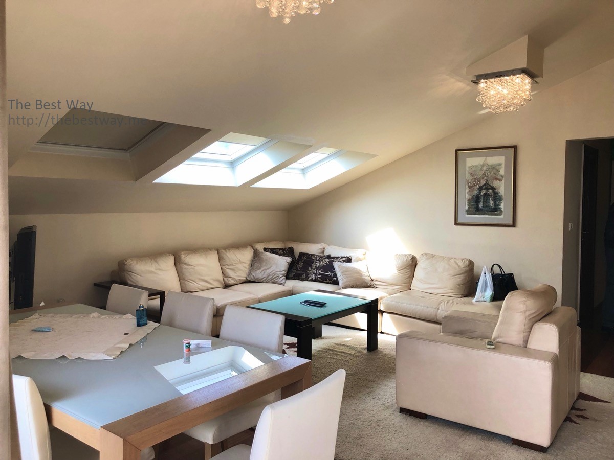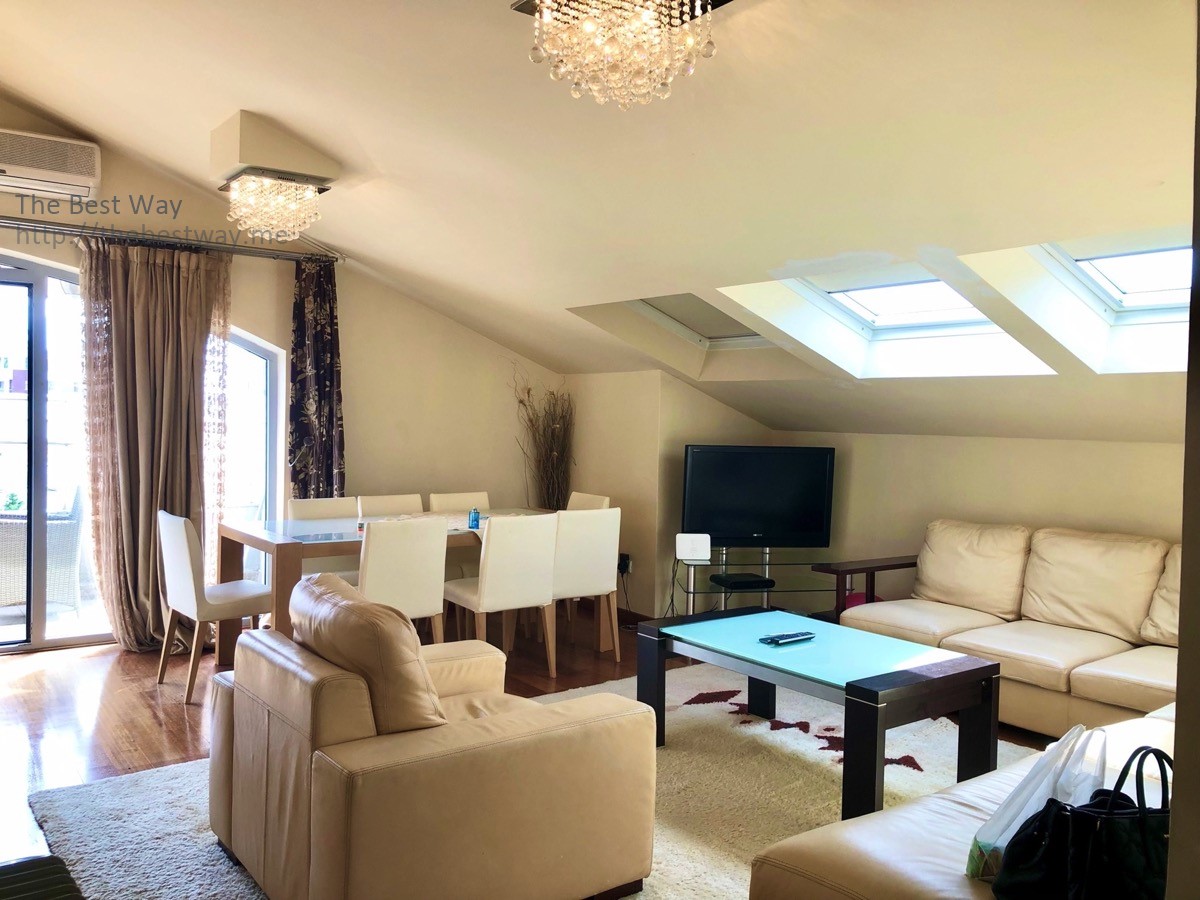 Description of the object: Area 87 m2 Apartment in the center of Budva, on the main boulevard - Adriatic Highway Located on the 5th floor (there is an elevator in the building). Layout - hall, living room, separate kitchen, 2 bedrooms, bathroom and terrace with beautiful views of the city center and the sea. Oriented to the south. The apartment is fully furnished, equipped with household appliances Ideal for renting and relaxing