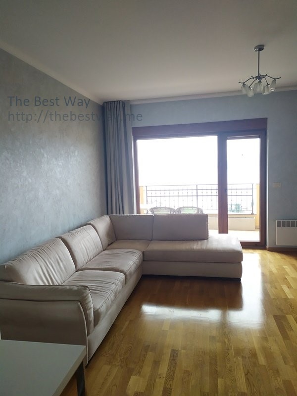 Stan sa panoramskim pogledom na more u stambenom kompleksu Površina: 78 m2 Dnevna soba-kuhinja-trpezarija, 2 spavaće sobe, kupatilo, Pomoćna soba i terasa. Stan se prodaje namješten. Na teritoriji kompleksa nalazi se bazen, Parking. More je udaljeno oko 200 metara.