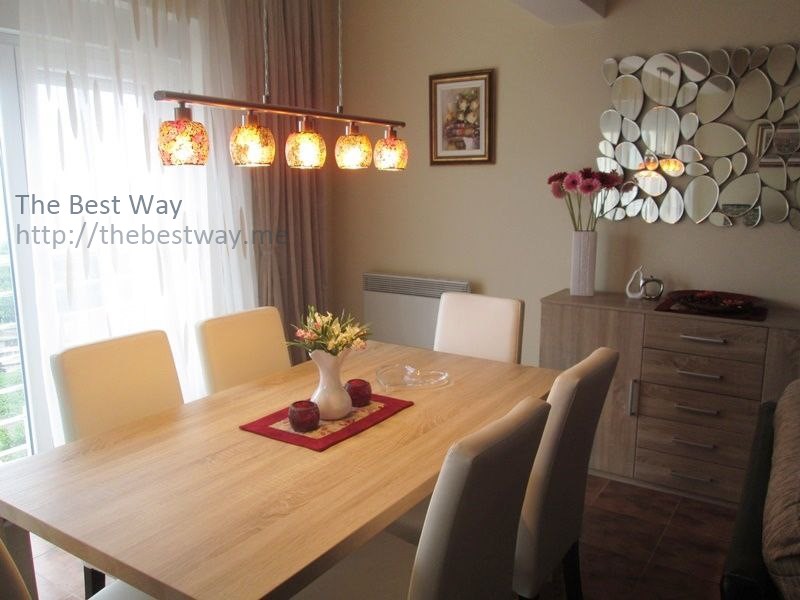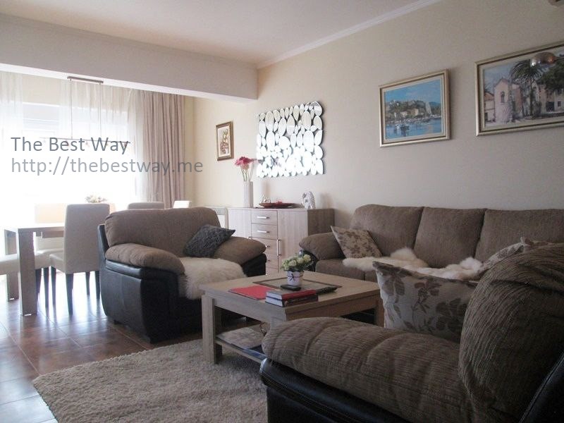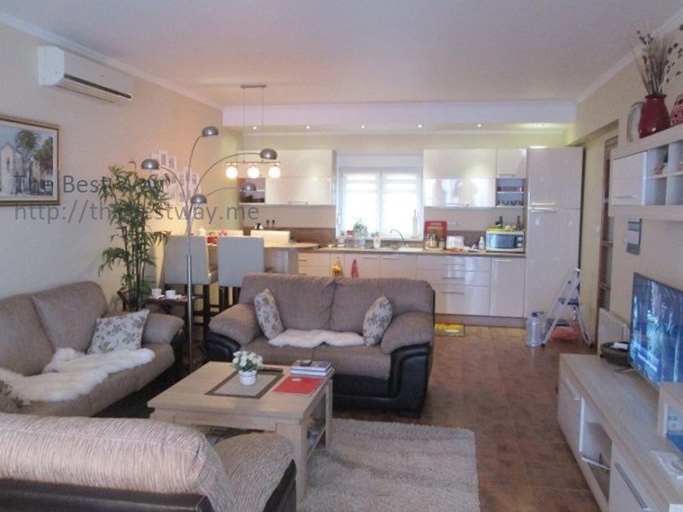 Stan sa panoramskim pogledom na more, Površina 85 m2 Prostrana dnevna soba-kuhinja-trpezarija, 2 spavaće sobe, kupatilo i terasa. Sve sobe gledaju na more. Stan je kompletno namješten. Parking prostor More je udaljeno oko 600 metara.