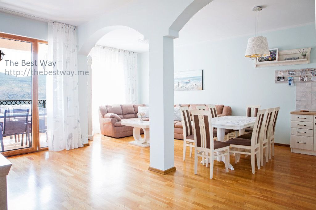 Površina 105 m2 Dnevna soba + kuhinja, 2 spavaće sobe, 2 Kupatila, 2 terase i predsoblje ( + Pomoćna soba od 6 kvadratnih metara.m nije uključeno u ukupne kvadratne snimke stana) Stan je potpuno opremljen novim namještajem, svaka soba ima zaseban klima uređaj, podno grijanje. Prirodni hrastovi prozori Porez na kupovinu je 0% jer direktno od programera. Kompleks ima 4 velika bazena, privatni parking, planinsku rijeku duž granice kompleksa, put do šume. osiguranje. Pješačka udaljenost do mora.