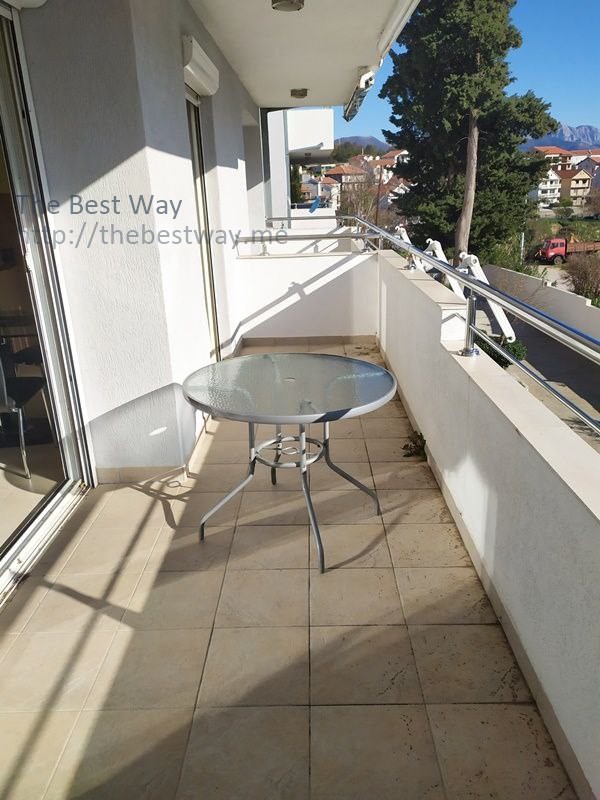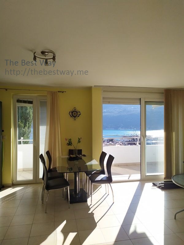 Stan sa panoramskim pogledom na more, Površina od 60 m2 dnevni boravak sa kuhinjom, spavaća soba, kupatilo i terasa. Bazen, rostil, Parking. Društvo za upravljanje radi. More je udaljeno 300 metara. Cijena je 130.000 €.