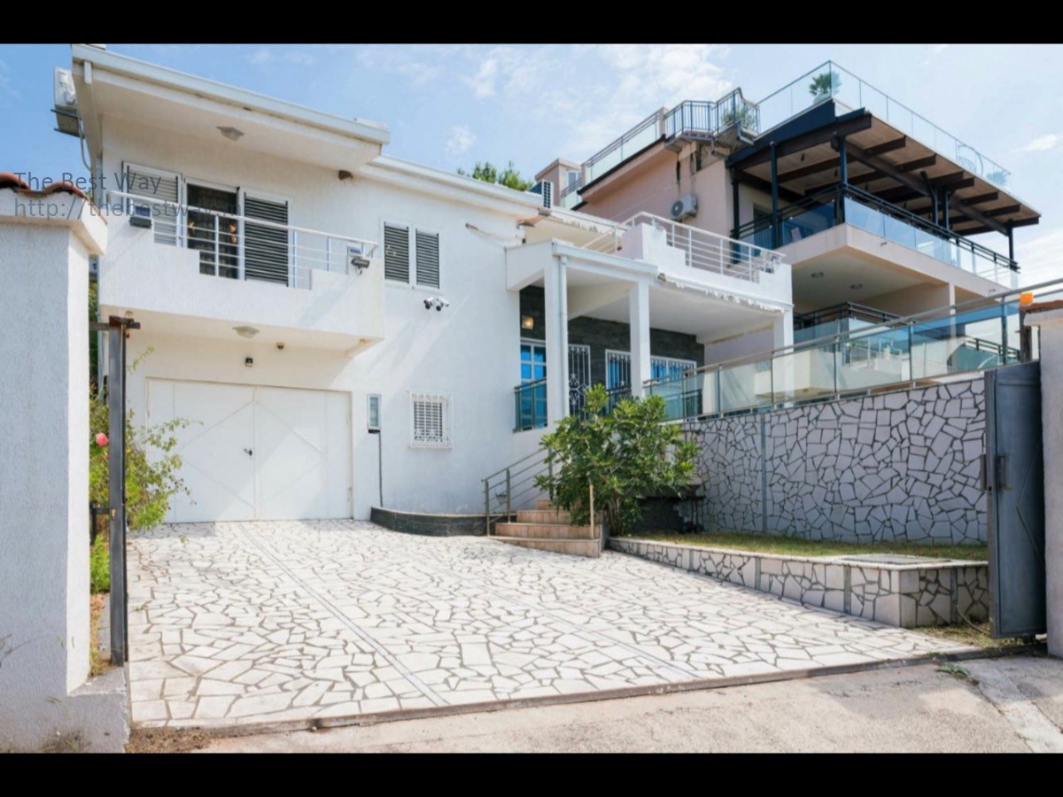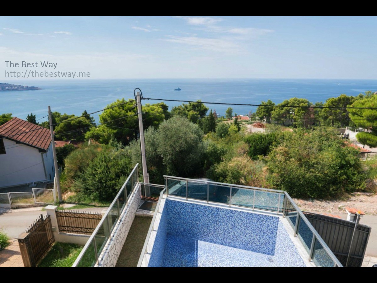 House with a pool and a beautiful view of the sea and mountains in Bar in Vitichi Distance to the beach 600 meters or 10 minutes walk. On the ground floor of the villa there is: a garage with a storage room, a hall, a fireplace room combined with a kitchen, a bathroom and a terrace. From the window of the hall there is access to an open terrace and a swimming pool, from where a beautiful view of the sea and mountains opens. On the second floor there is a bathroom and 3 cozy living rooms overlooking the sea. On the third floor there is a hall and a large terrace with excellent views. Each room has air conditioners and convectors. The house is for sale fully furnished, with a fully equipped kitchen and all garden equipment. There is a stone BBQ in the backyard. Also on the site there is parking, designed for 2 parking spaces with a gate with an electric motor. There is a city sewer