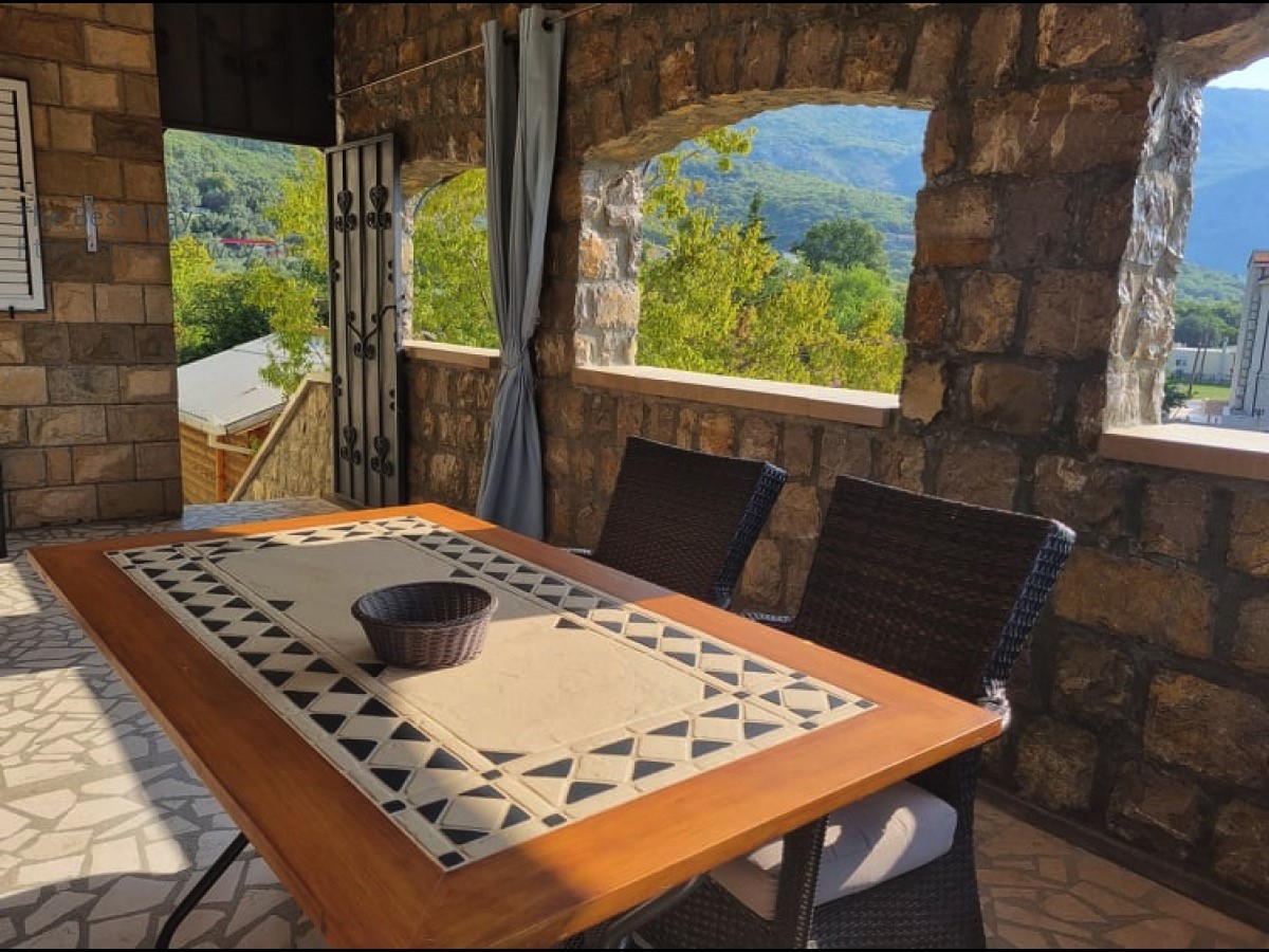 Stone house in Buljarica, Budva - house area 198m2 - area of the house with terraces 300m2 - basement 26m2 - land area 491m2 The house has two floors of living quarters and each floor has a separate entrance. House structure: - the first floor consists of a living room with a fireplace, 4 bedrooms, a kitchen, a bathroom and a large terrace with panoramic views of the mountains and the sea - the second floor consists of a living room, 3 bedrooms, a kitchenette, a bathroom and a large terrace with panoramic sea and mountain views. The house is fully furnished and equipped with all necessary appliances. Cellar for storage of wines, dry-aged meat and cheese delicacies. In the basement are located: a room, a toilet, a laundry room. The courtyard is terraced, paved with stone, with a barbecue area, a garage, the entrance to the house is registered in the list of real estate. The ideal location of the house, 5 minutes walk to the beach. The sand and gravel beach, 2.5 km long and 150 meters wide, will delight you with its magnificence. There is the entire infrastructure - grocery stores, bars and restaurants. 5 minutes drive to Petrovac and 20 minutes to Budva.