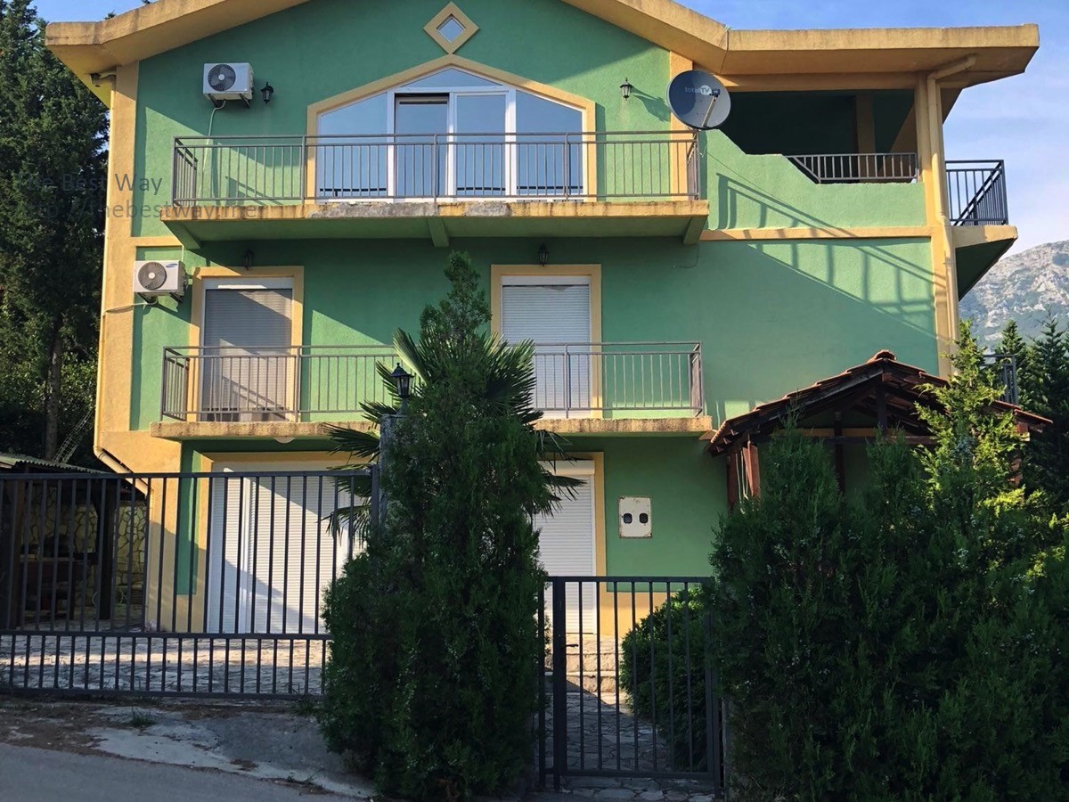 Three-storey villa near the sea in Zagrača, Sutomore - total area of the villa 250m2 - land area 455m2 On the ground floor there is a living room, a kitchen-dining room, 2 bedrooms, a combined bathroom. On the second floor there is a kitchen-living room, 3 bedrooms, 2 bathrooms, 2 terraces. On the third floor there is a kitchen-living room, a sleeping area, a combined bathroom, 1 large terrace, 1 small terrace. All bedrooms on all floors have access to the terraces. Fenced, landscaped area. Parking for several cars. City communications. Quiet and picturesque area. In the courtyard there are 2 covered tends, a barbecue area. To the sea 300 meters.