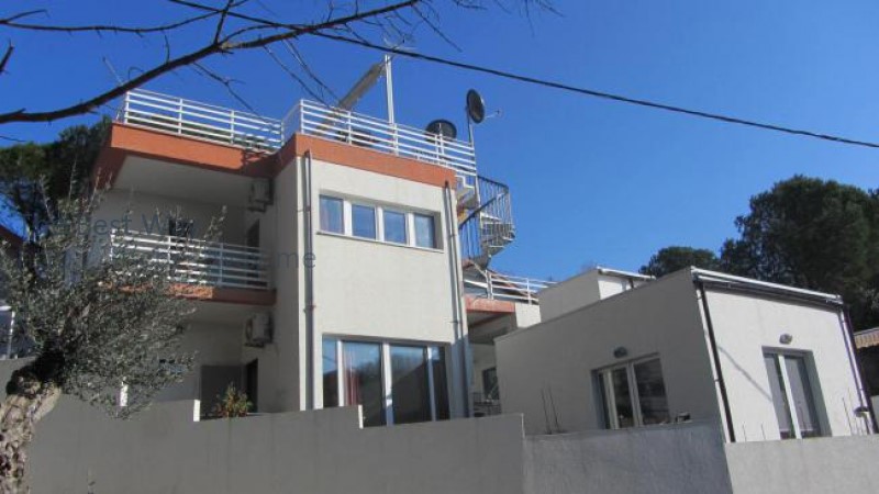 House for sale in Bar (Rataс). The house is located on an elevation 1 km from the sea. From the house there is a panoramic view of the sea, there are a lot of greenery and pine trees around the plot. House area 108m2, plot size 275m2. The house consists of two separate units, one bedroom apartments on each floor. There is a spacious roof terrace. The house is fully furnished and has a swimming pool.