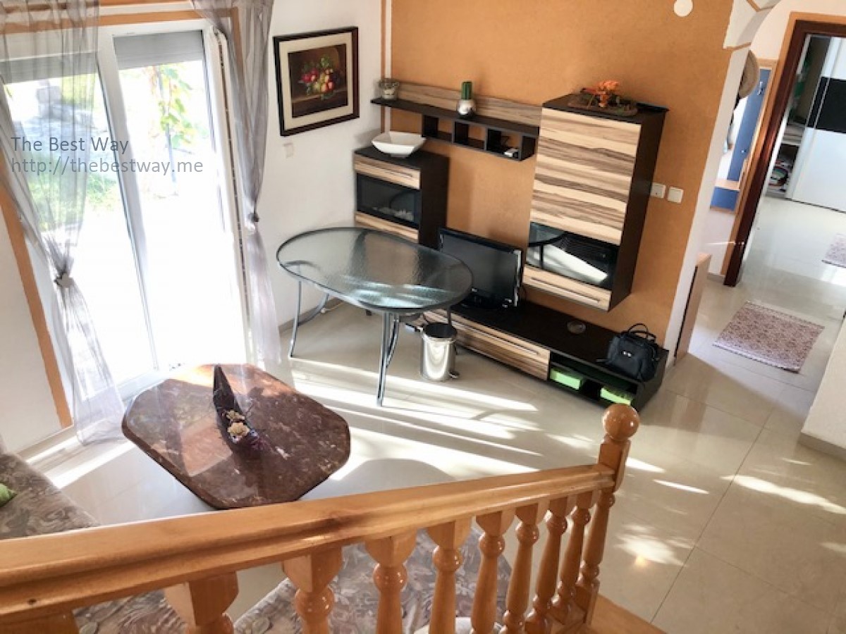 Object description: The house is located in the village. Krimovica, 5 km from Budva. Nice sea view, well maintained plot. The house has 3 bedrooms, kitchen-living room, terrace overlooking the sea and mountains. House area 100 m2, plot 350 m2. The best beaches of Ploce and Jaz are 1.5-2 km away