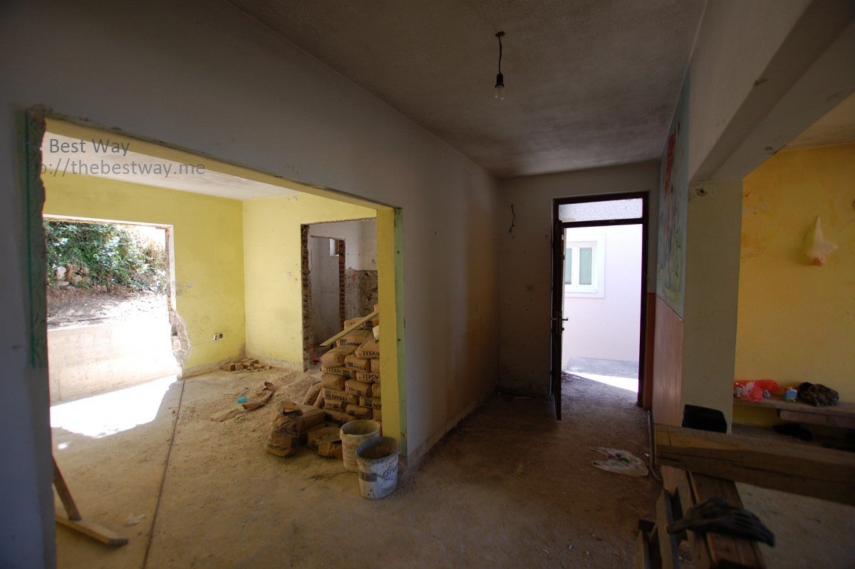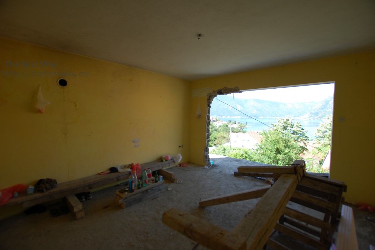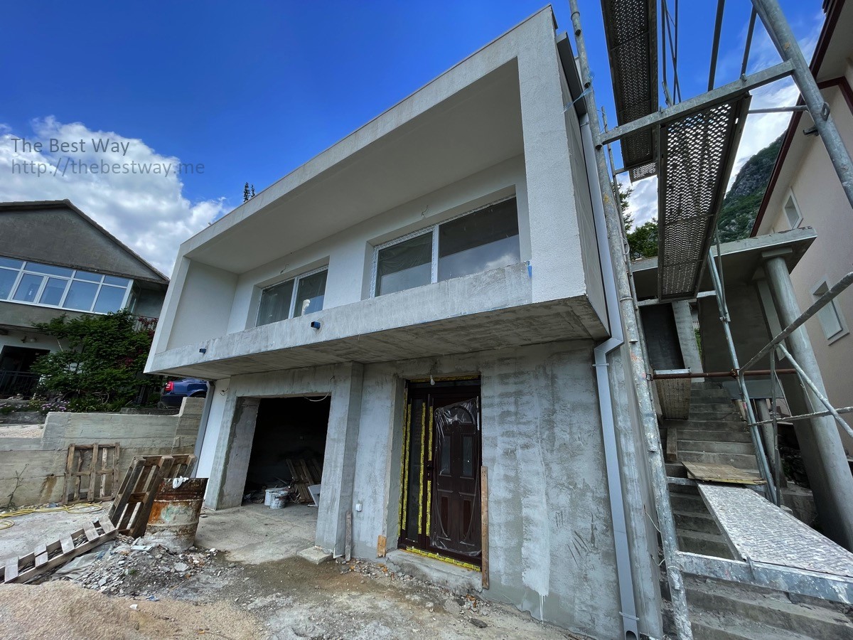 Object description: House under construction 300 meters from the sea in the town of Risan. Plot 309 sq. m. On the ground floor there is a garage with an area of 39 sq. m.. The entrance to the first floor is via a staircase from the outside. First floor area is 102 sq.m. There are 3 bedrooms, a living room, a kitchen, 2 bathrooms. A spacious roof terrace is planned.