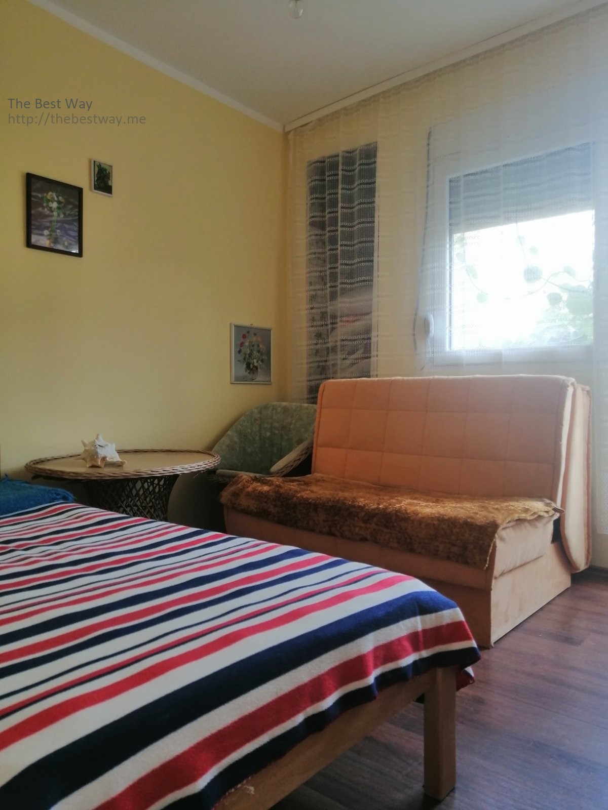 Object description: Three-storey house with three apartments in Dobra Voda, Bar - three-storey house with an area of 180 m² with three apartments - fenced green land plot 237 m² - on the ground floor of the house there is a living room, a kitchen with a dining area, a bathroom, a storage room, a large terrace with arches, on the other side of the house there is a spacious technical room, an external staircase - on the 1st floor there is an entrance hall, a living room, a kitchen, two bedrooms, a bathroom - on the 2nd floor there is an entrance hall, four bedrooms, a bathroom for renovation - the house is furnished and equipped with appliances - parking for several cars on the site - planted with fruit trees, grapes - sea view - distance to the sea 600 meters - developed infrastructure, supermarket within walking distance