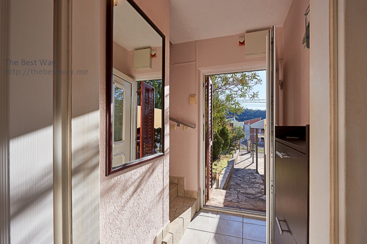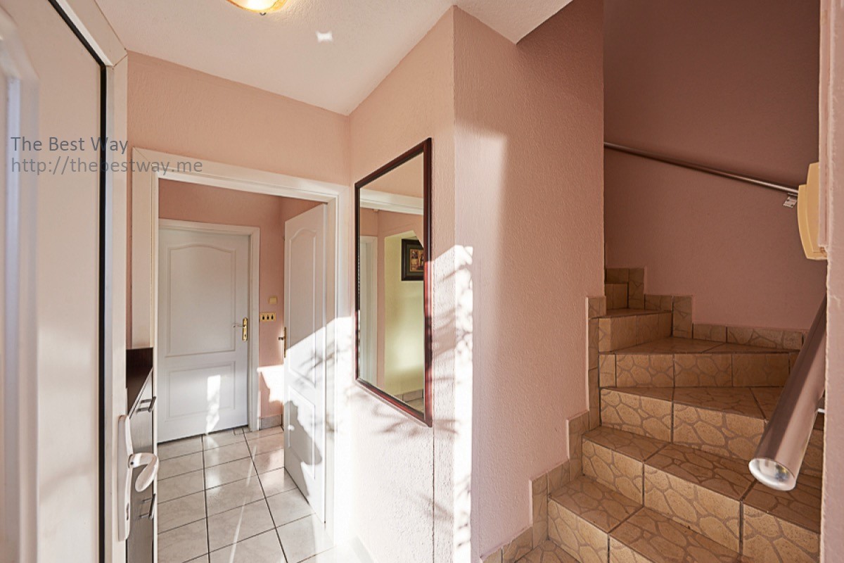 - unutrašnje stepenište Kuća je potpuno opremljena i opremljena svim potrebnim aparatima. Voda je rezervoar. Kanalizacija-septička jama. Ograđena teritorija. Prostran Parking za nekoliko automobila. Parking za brodove je moguć. Dobro njegovana teritorija sa voćnjakom. Pogled na more. Udaljenost do mora je 250 metara. Mirno slikovito područje s ugodnim kristalnim morskim kovovima, traženo među Evropljanima. Kuća je idealna za život tokom cijele godine i za iznajmljivanje.