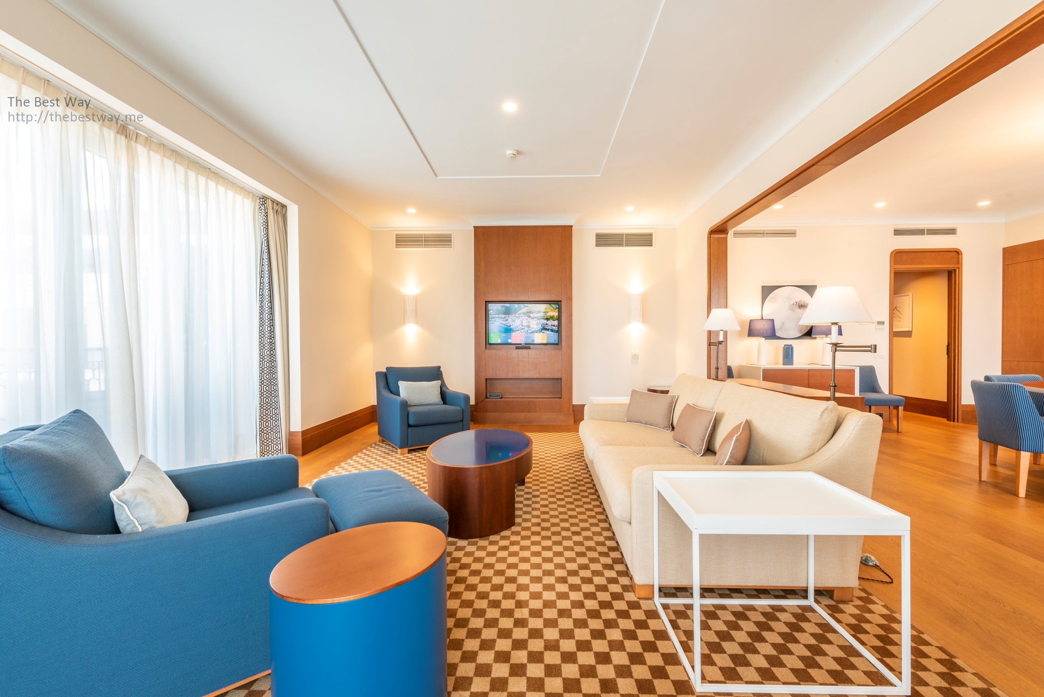 Price 2,500,000 € Regent Waterfront Apartments Area: 252 m2 (211 m2 + 41 m2 terrace) Bedrooms: 3 Bathrooms: 3 Two-bedroom apartment with a total area of 252 m2 with panoramic sea views, in the Regent Hotel, Porto Montenegro. The apartment consists of a large living room with a dining area and a kitchen and access to a spacious terrace with panoramic sea views, three bedrooms with bathrooms and a guest toilet. The apartment has three separate entrances, so it can function as three separate residential units: two studio apartments and one one-bedroom apartment.