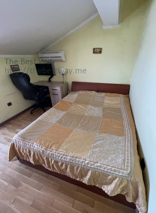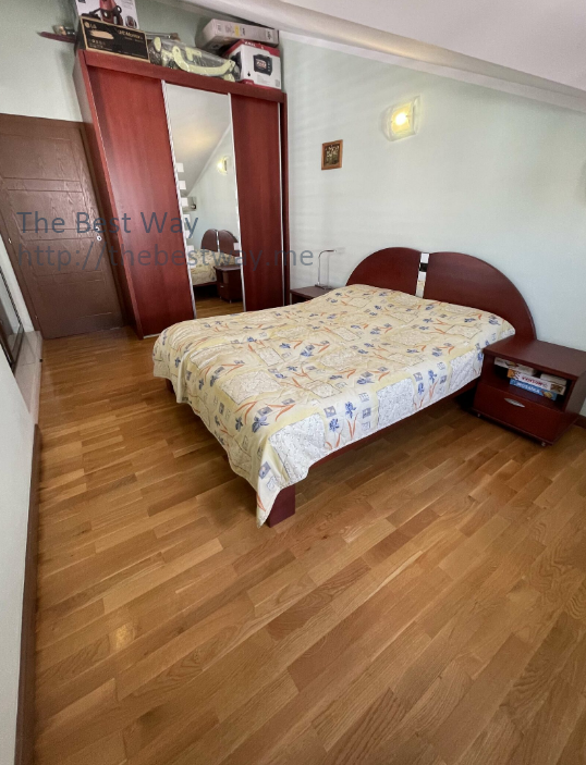 Treći sprat. 2 spavaće sobe, 1 Kupatilo sa tušem, kuhinja-dnevni boravak su zonirani. Veliki vrt za rekreaciju na otvorenom. Djelomičan direktan pogled na zaljev i planine. Postoji mogućnost korištenja velikih dječijih i odraslih bazena i prostora za roštilj zajedno sa susjedima. Mjesto na parkiralištu.