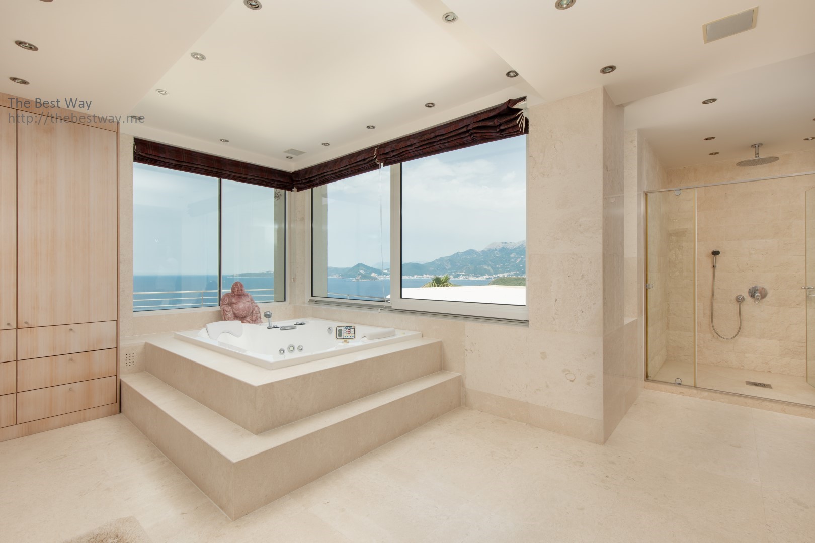 Exclusive residence, ideally located in the village of Rejevici, Budva Riviera, 5 minutes walk from the sea. This elegant architectural style of the residence, designed by Atelier d'Architecture in 2005 and renovated in 2010, on a plot of 6,455 m2, meets high standards such as double facade walls with ventilation, central air conditioning and heating, hand-cut natural stone, marble and parquet floors. exquisite finish, detailed craftsmanship, etc.