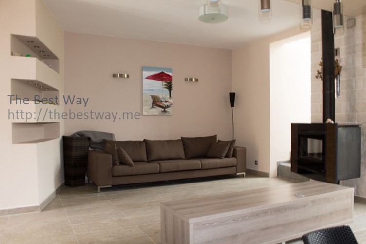 New house overlooking the bay in Kamenari Area 140 m2, Plot 375 m2. On the ground floor are located: living room, kitchen-dining room, bathroom and utility room. On the second floor there are three bedrooms and a large bathroom. The house is fully furnished and equipped with household appliances. There are two parking spaces in front of the house. From the windows of the house offers a magnificent view of the bay. The house is located near the water, in a quiet, green part of the village. All communications and infrastructure are urban.