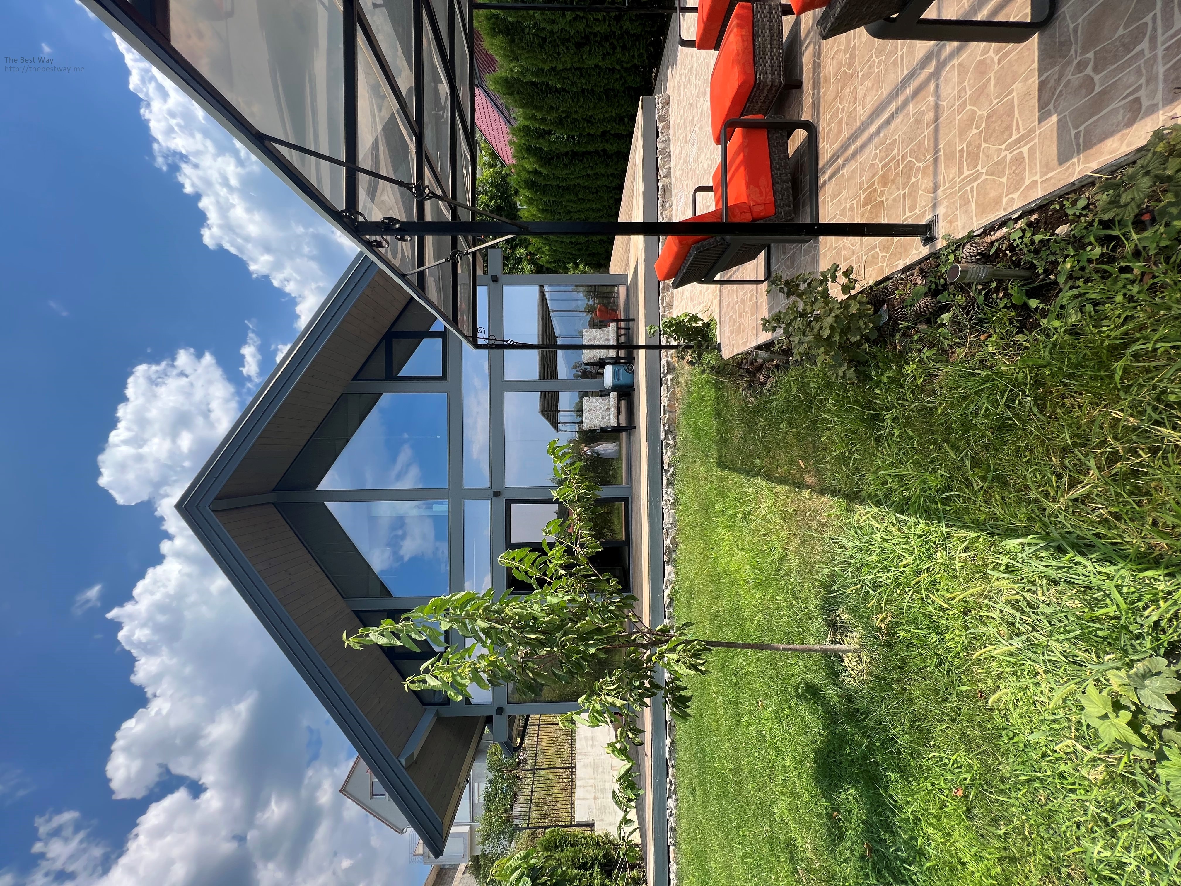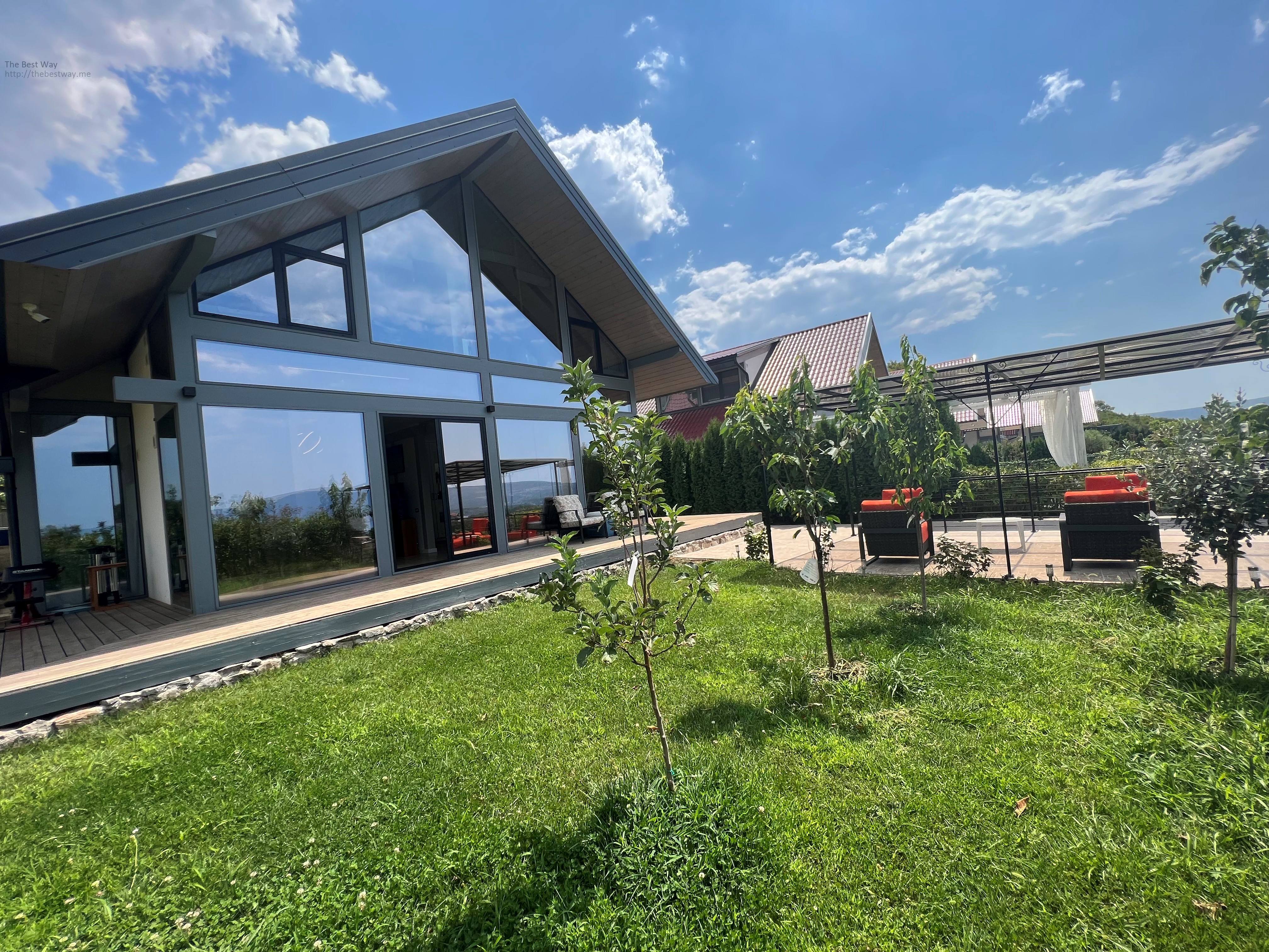 The total area of 323 m². The perimeter of the house and land is equipped with modern systems of surveillance and security. The house is surrounded by garden terraces, which create a unique space and an intimate atmosphere. The garden has no neighbours, and provides absolute privacy. On the territory is also planted orchard (feijoa, apricot, peach, cherry, apple, tangerine) . Behind the house is equipped with a mini-garden with computerized system of care for seedlings and clever soil, allowing you to harvest all year round. Next to the house is equipped with a cozy spacious terrace with panoramic views and outdoor furniture.