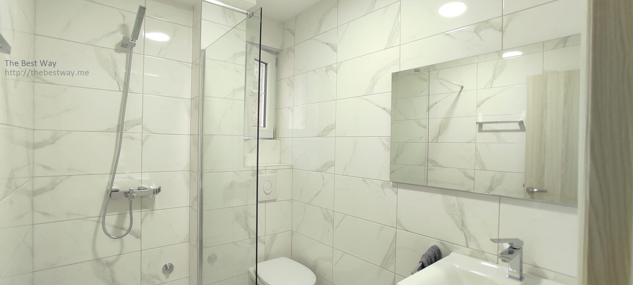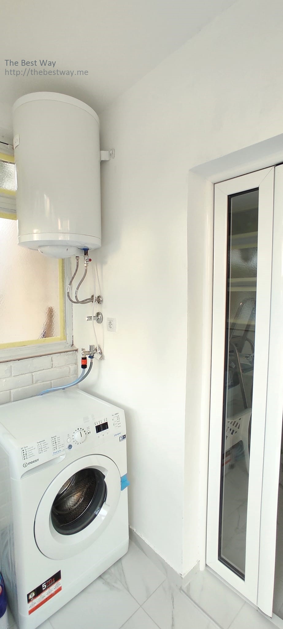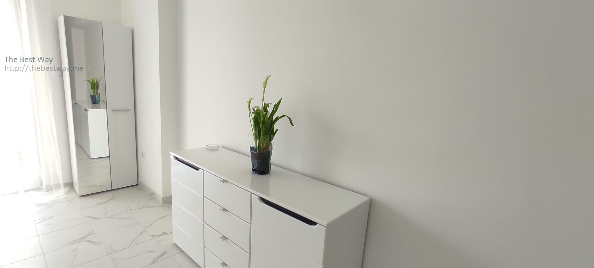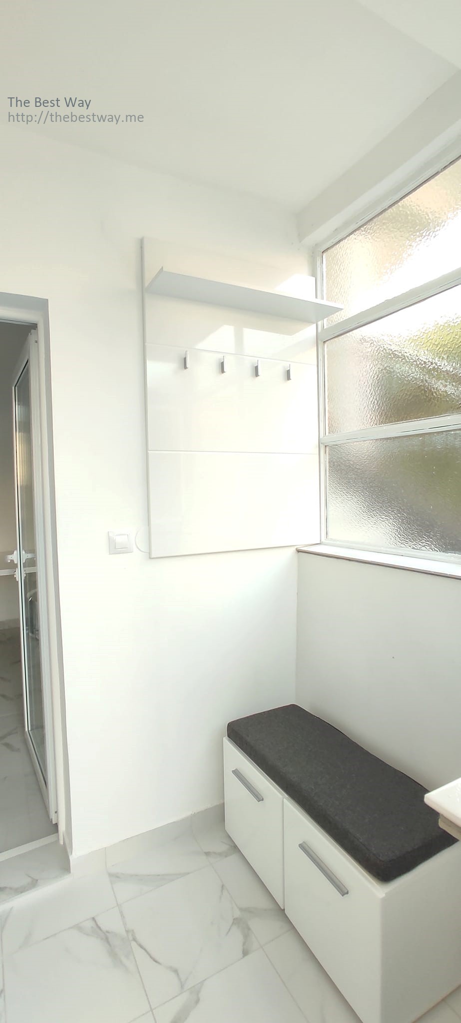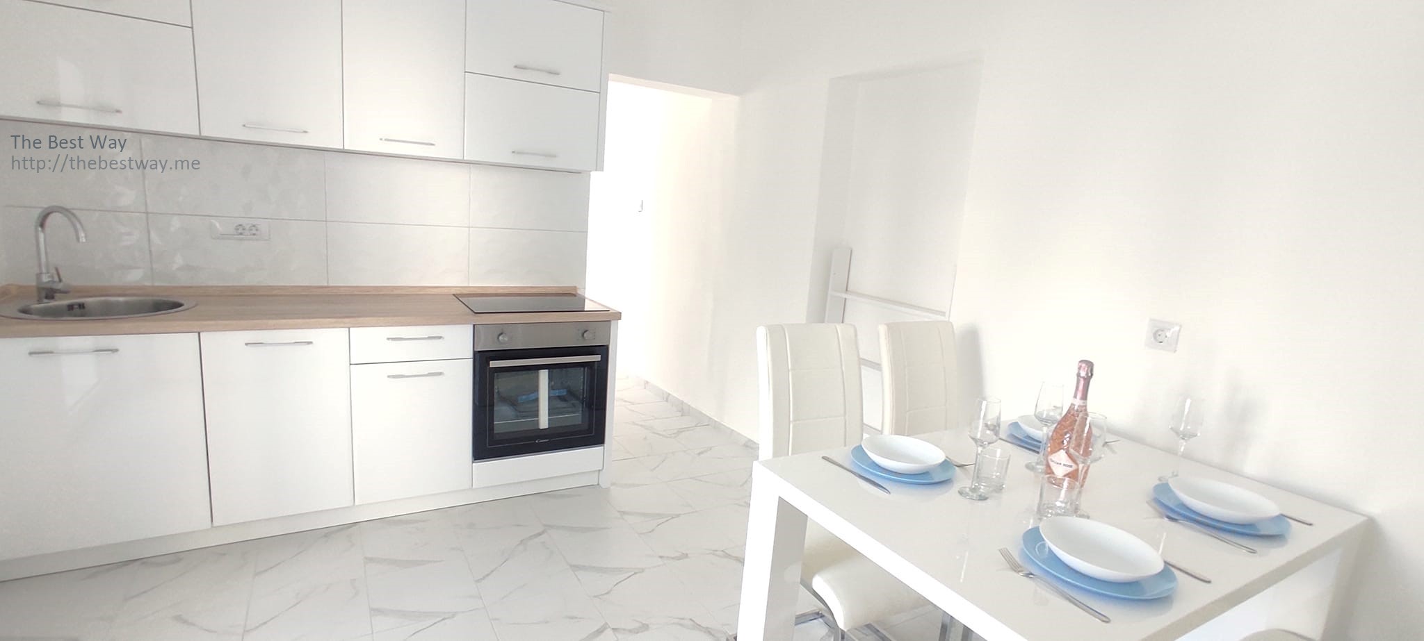 Apartment area 40 m2 Plot of land 100 m2 View of the sea and Portonovi. Entrance hall, dining-kitchen, bathroom with shower, bedroom with access to the garden. Shared parking. To the sea 5 minutes walk. The apartment is after a major renovation - everything is new. Heated floors in all rooms. New windows, furniture, appliances: large refrigerator, dishwasher, oven, hob, washing machine. The apartment has everything you need for life all year round. Grapes, pomegranates, mulberries, flowers, jasmine grow in the garden.